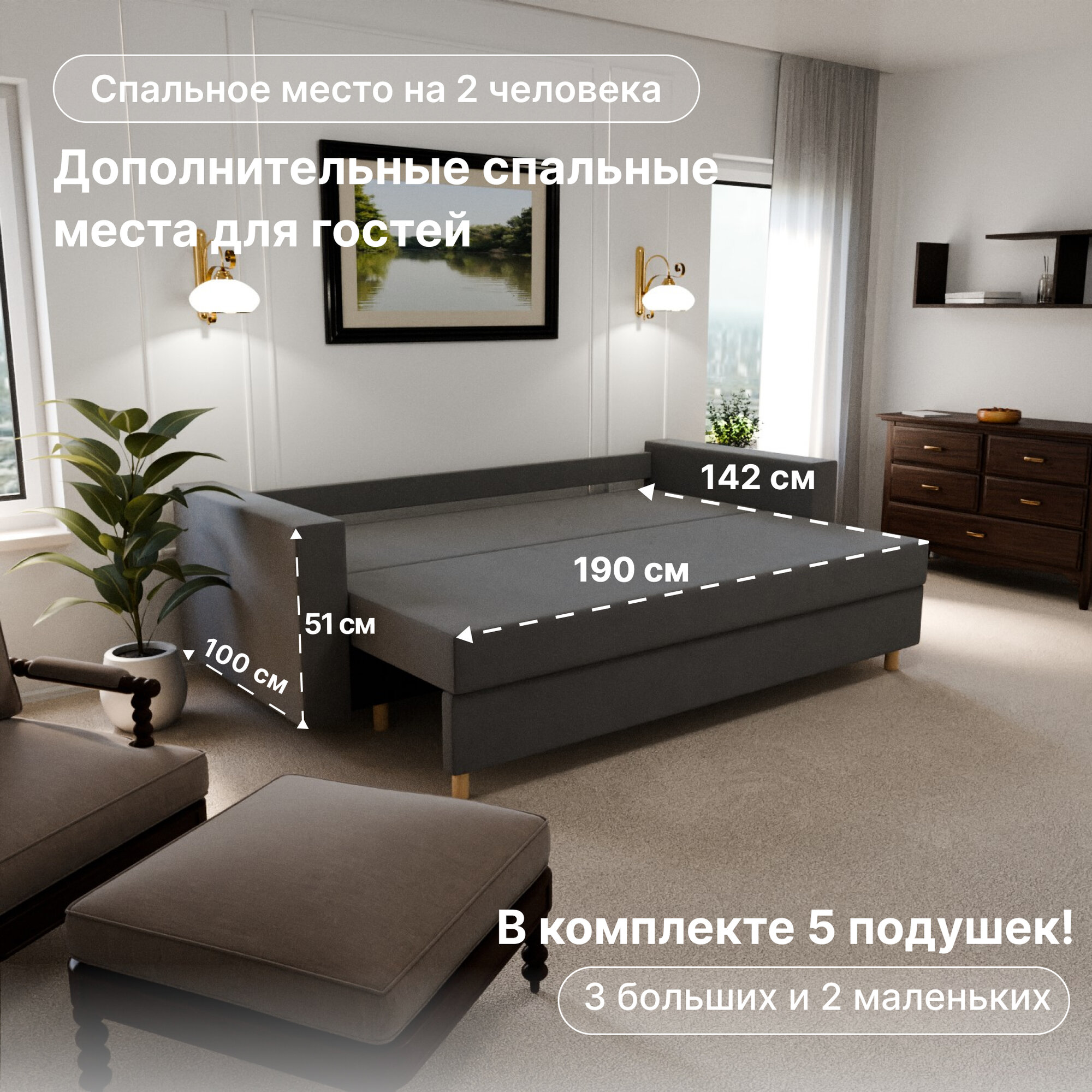 | Особенности | раскладная конструкция, с подлокотниками, съемные подушки, съемный чехол, ящик для белья |