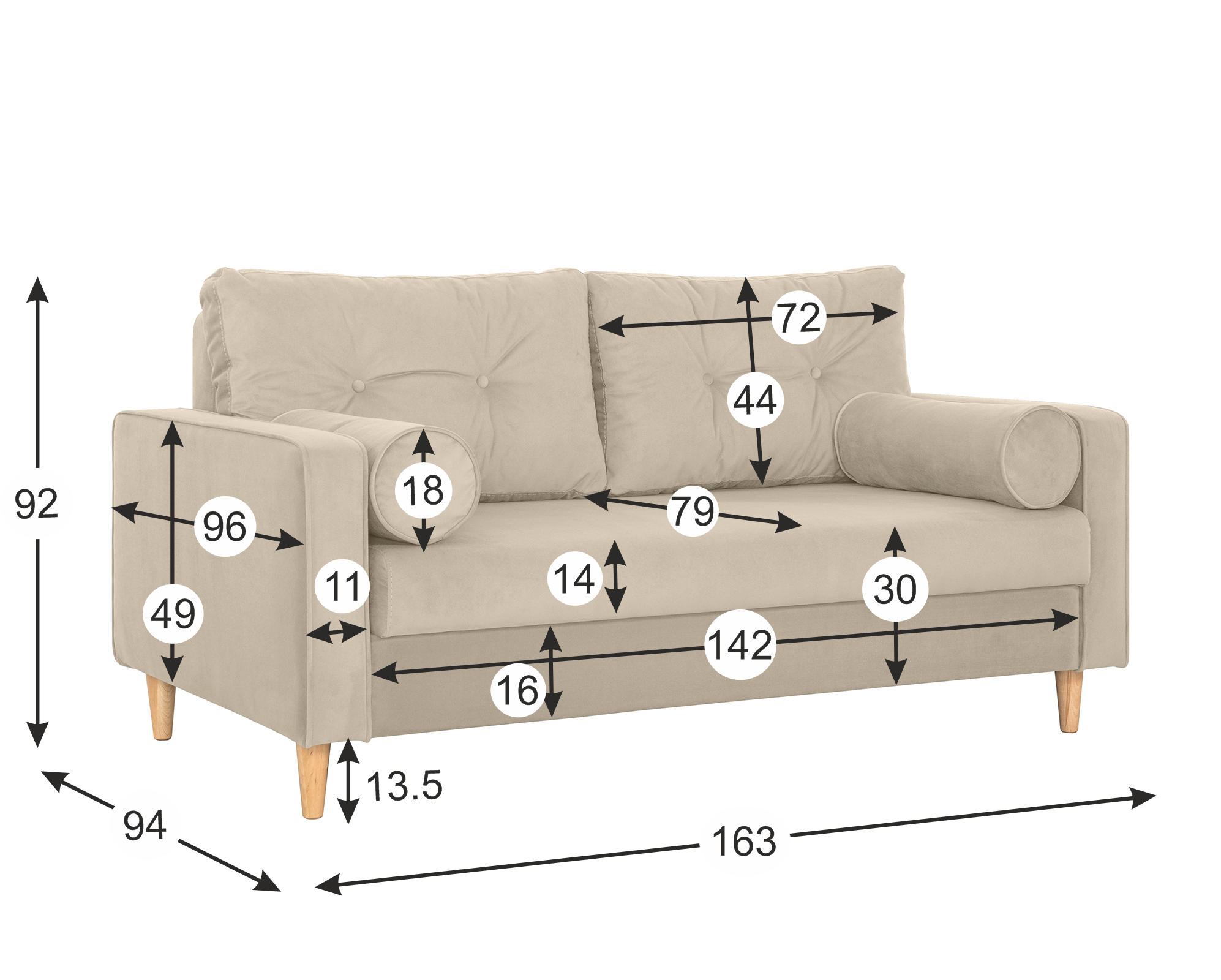 Диван-кровать Дублин, 163*94*92, спальное 140*194, велюр бежевый, Велутто 07 информация: