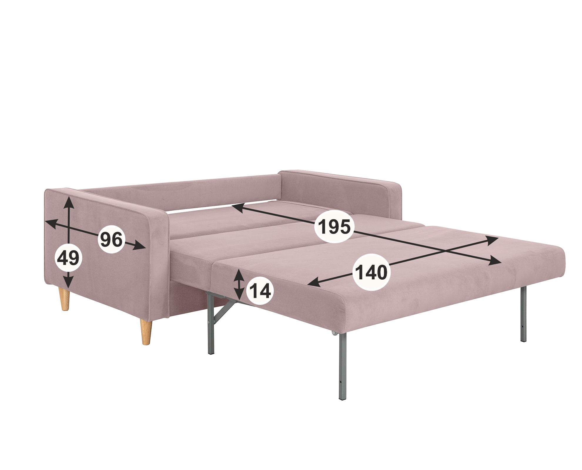 Диван-кровать Дублин, 163*94*92, спальное 140*194, велюр розовый, Велутто 11 информация: