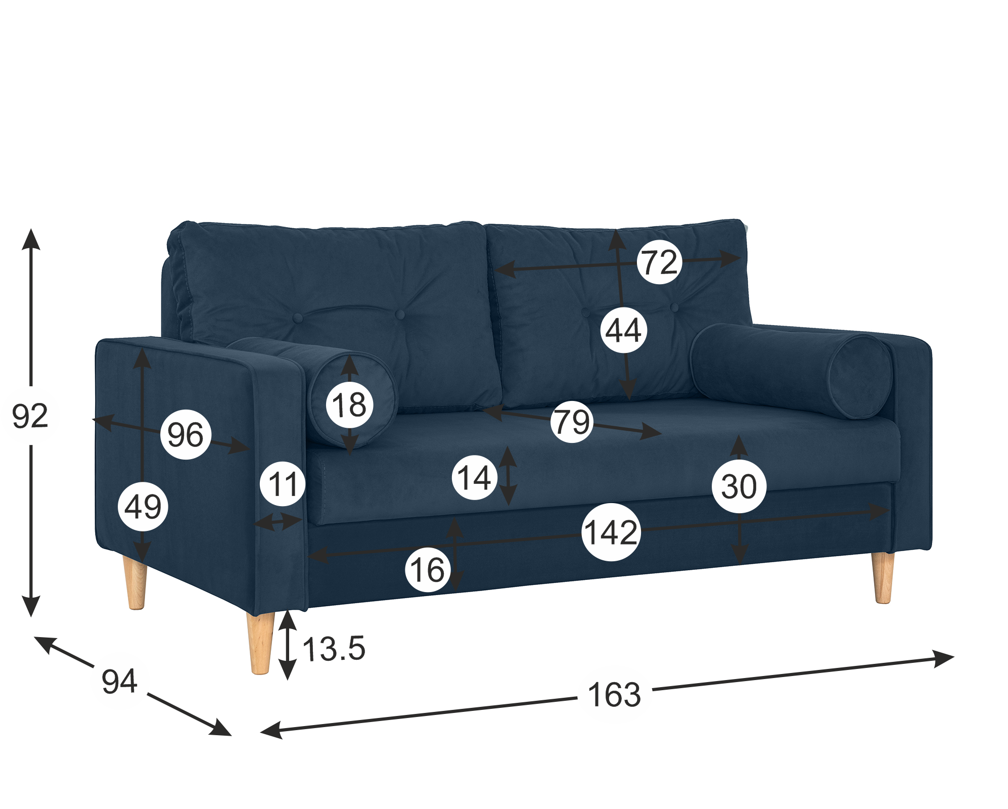 10 цен на Диван-кровать Дублин, 163*94*92, спальное 140*194, велюр синий, Велутто 26