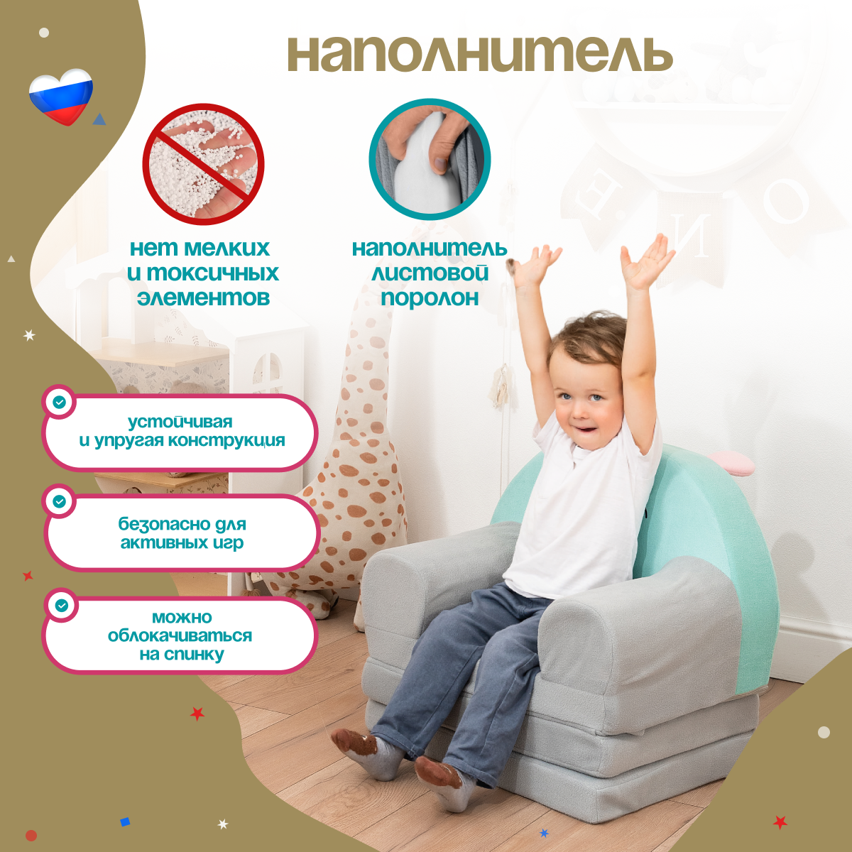 10 цен на Кресло детское мягкое 2 сложения бескаркасное Bruno (игровое, легкое)
