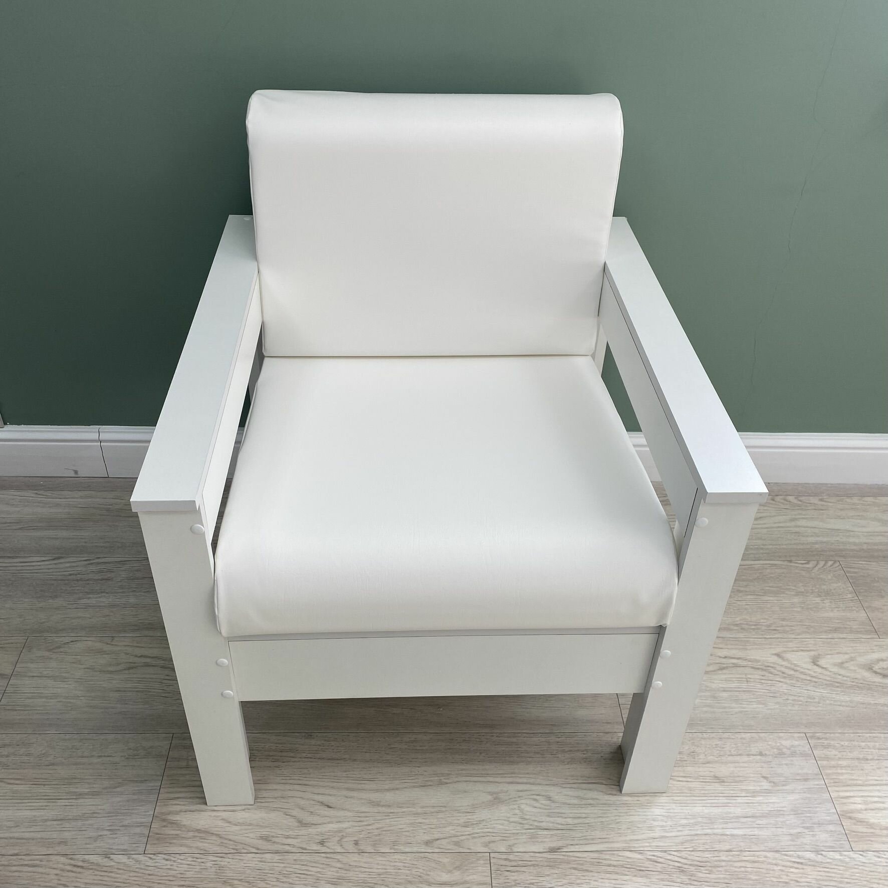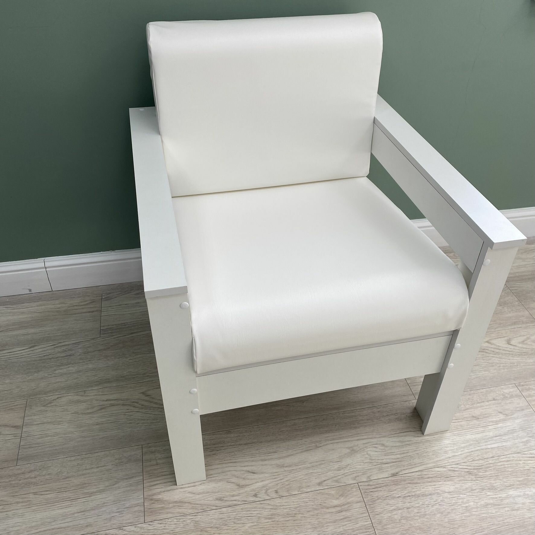 Кресло лофт мягкое удобное для отдыха, уличное, на балкон, на веранду, во двор, в баню, Комфи ++ велюр молочный
