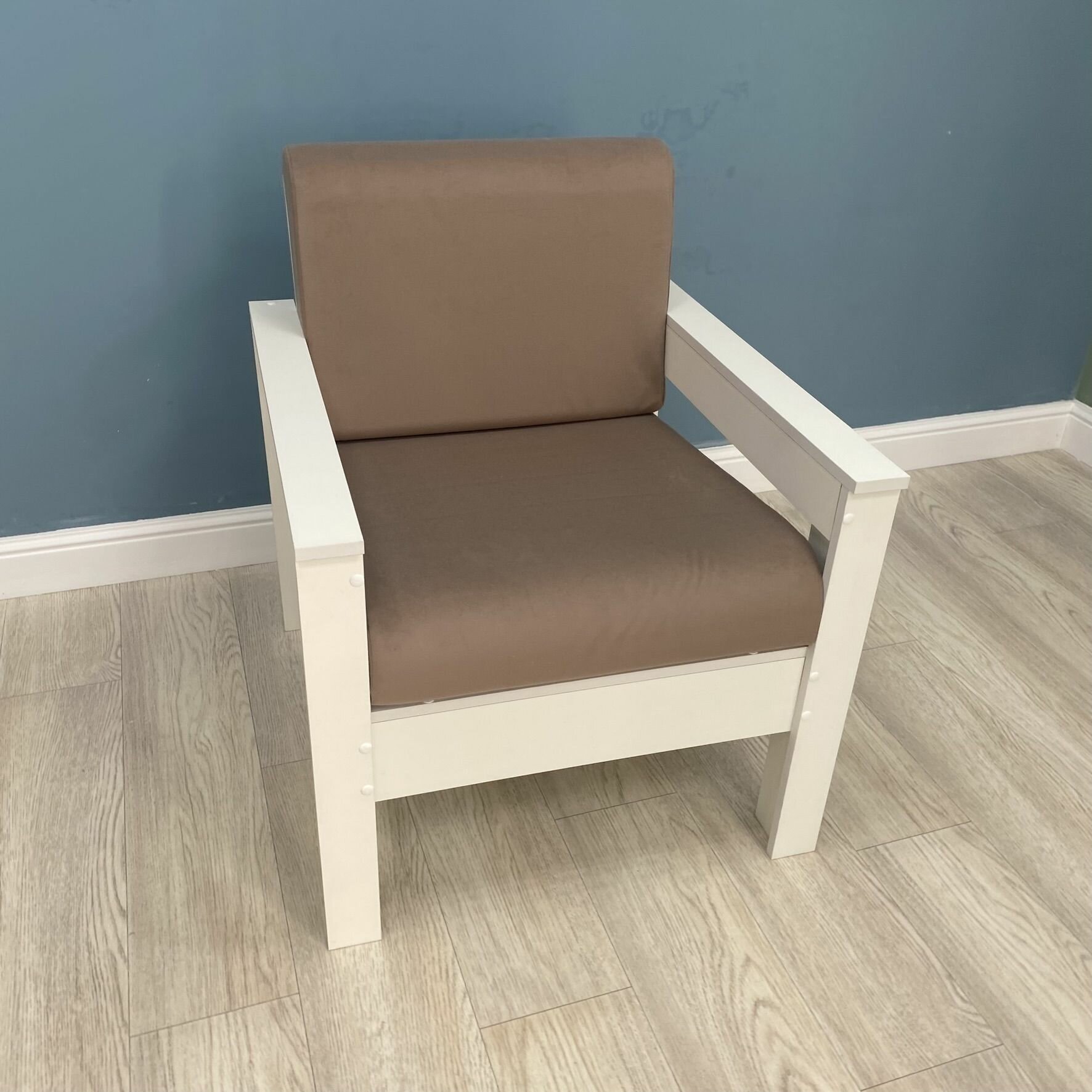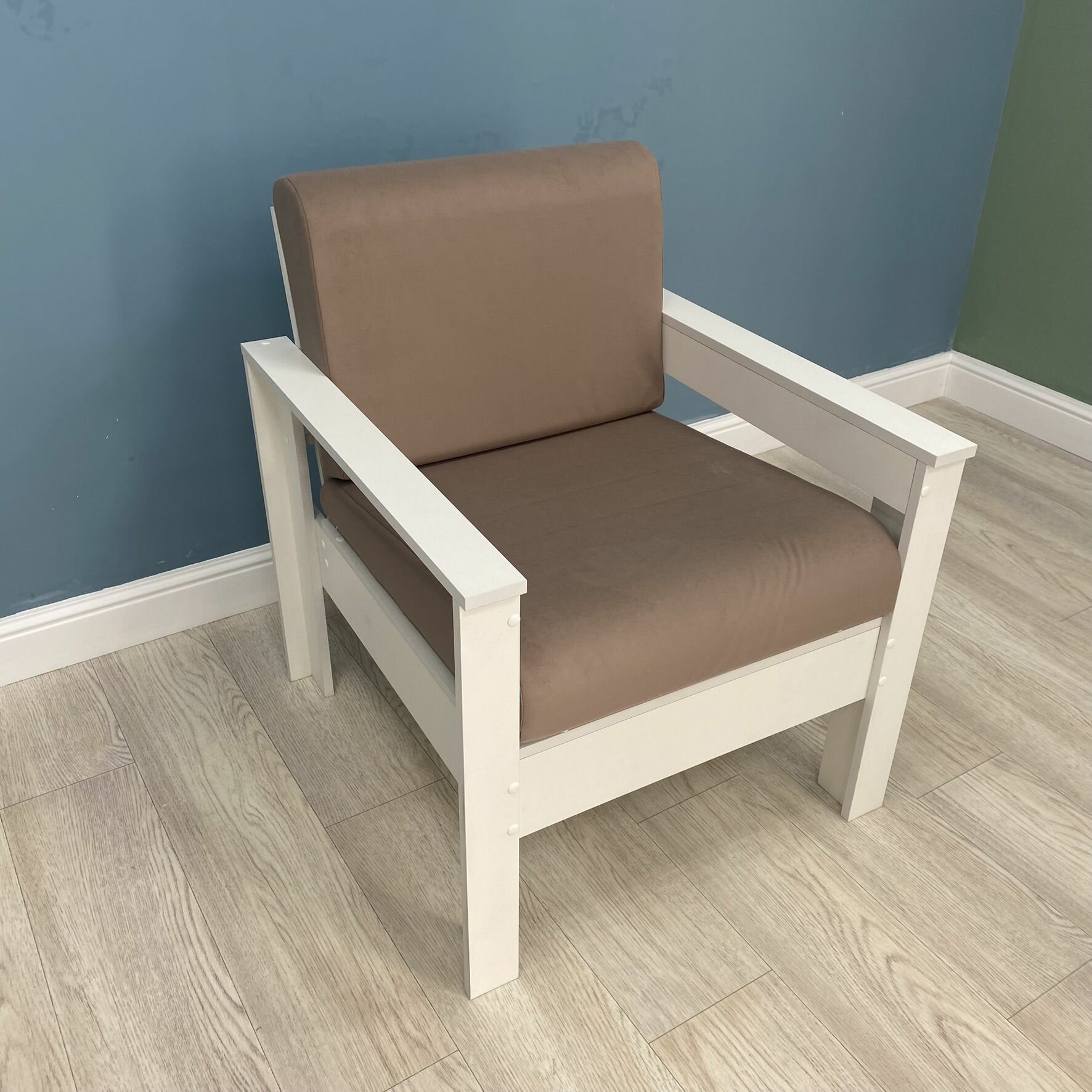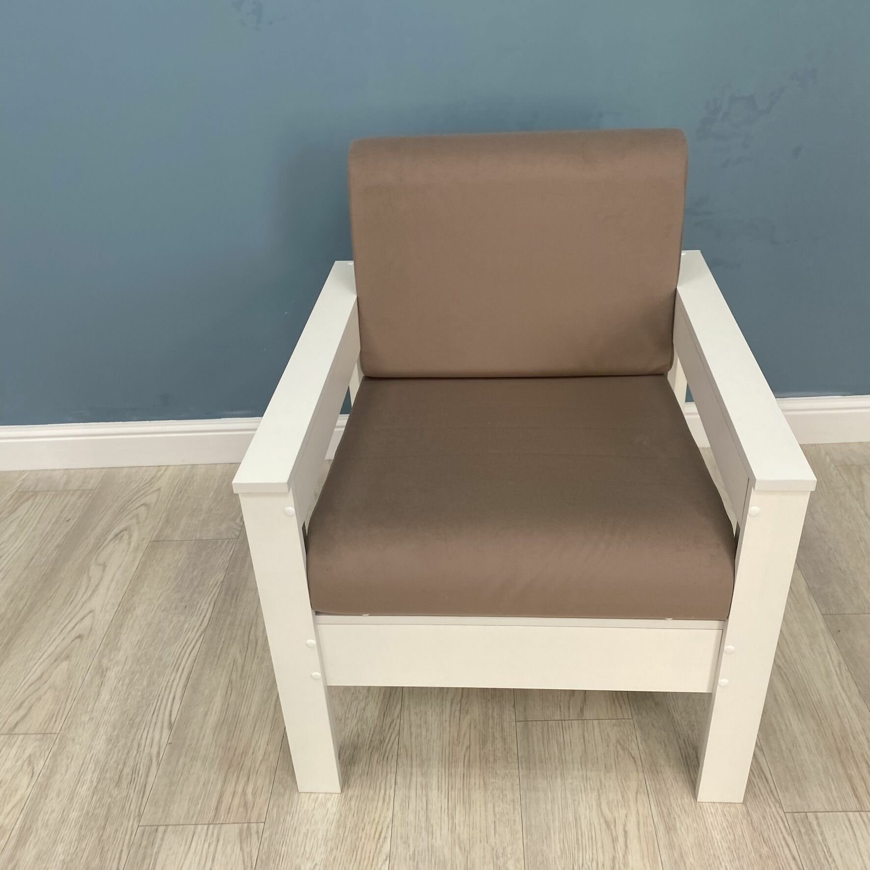 Кресло лофт мягкое удобное для отдыха, уличное, на балкон, на веранду, во двор, в баню, Комфи ++ велюр молочный