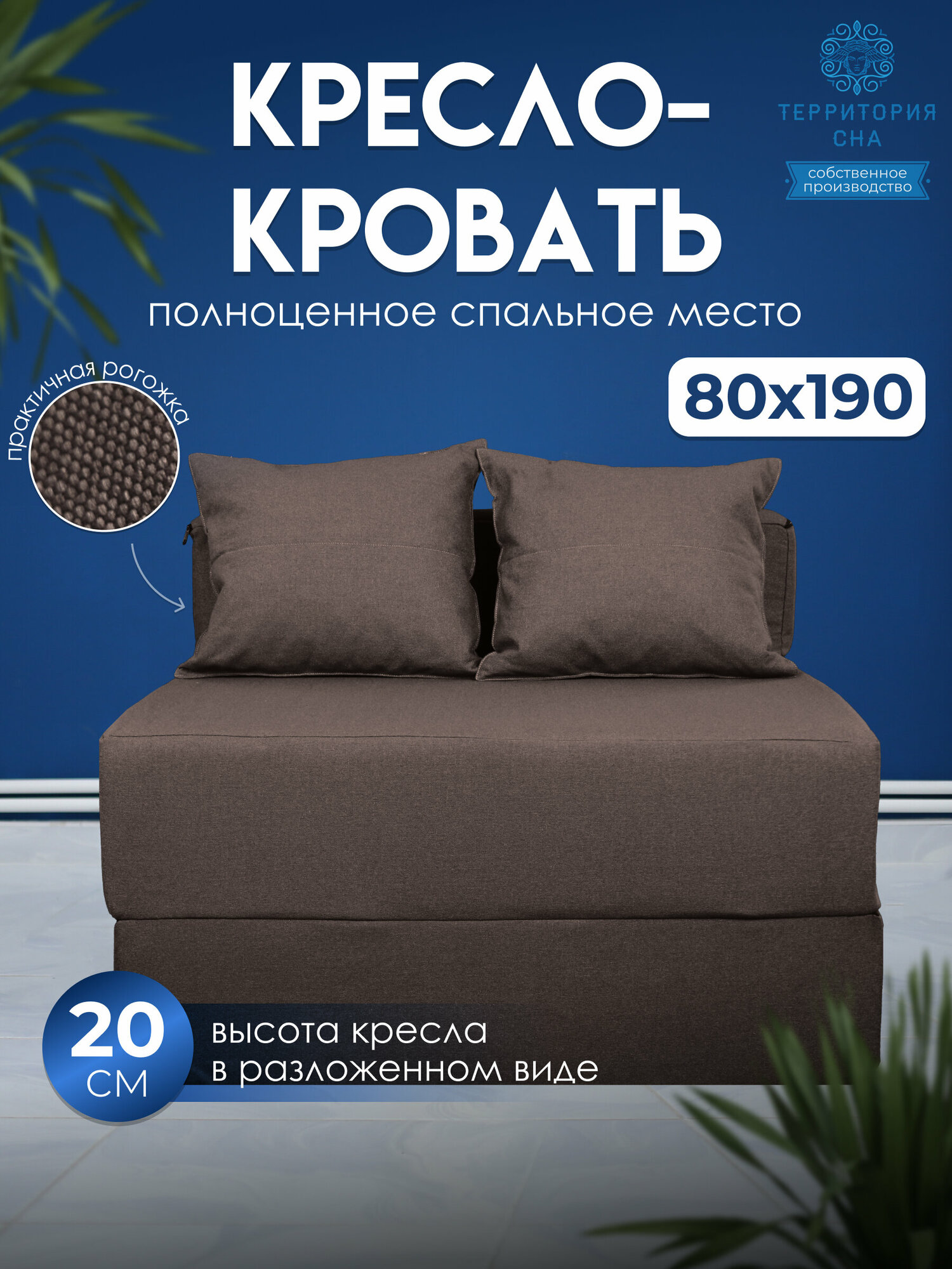 10 цен на Бескаркасное кресло-кровать 80х190 см, высота матраса 20 см. Цвет: Шоколад. Трансформер, раскладушка, складной матрас