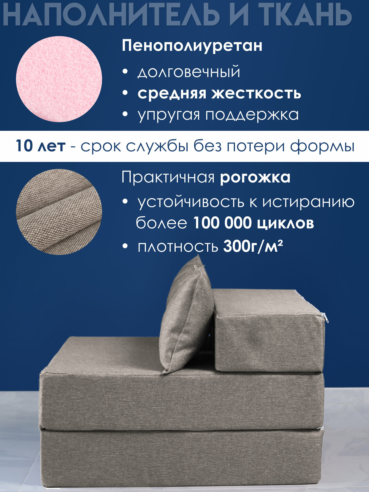 Бескаркасное кресло-кровать 80х190 см, высота матраса 20 см. Цвет: Бежевый. Трансформер, раскладушка, складной матрас информация: