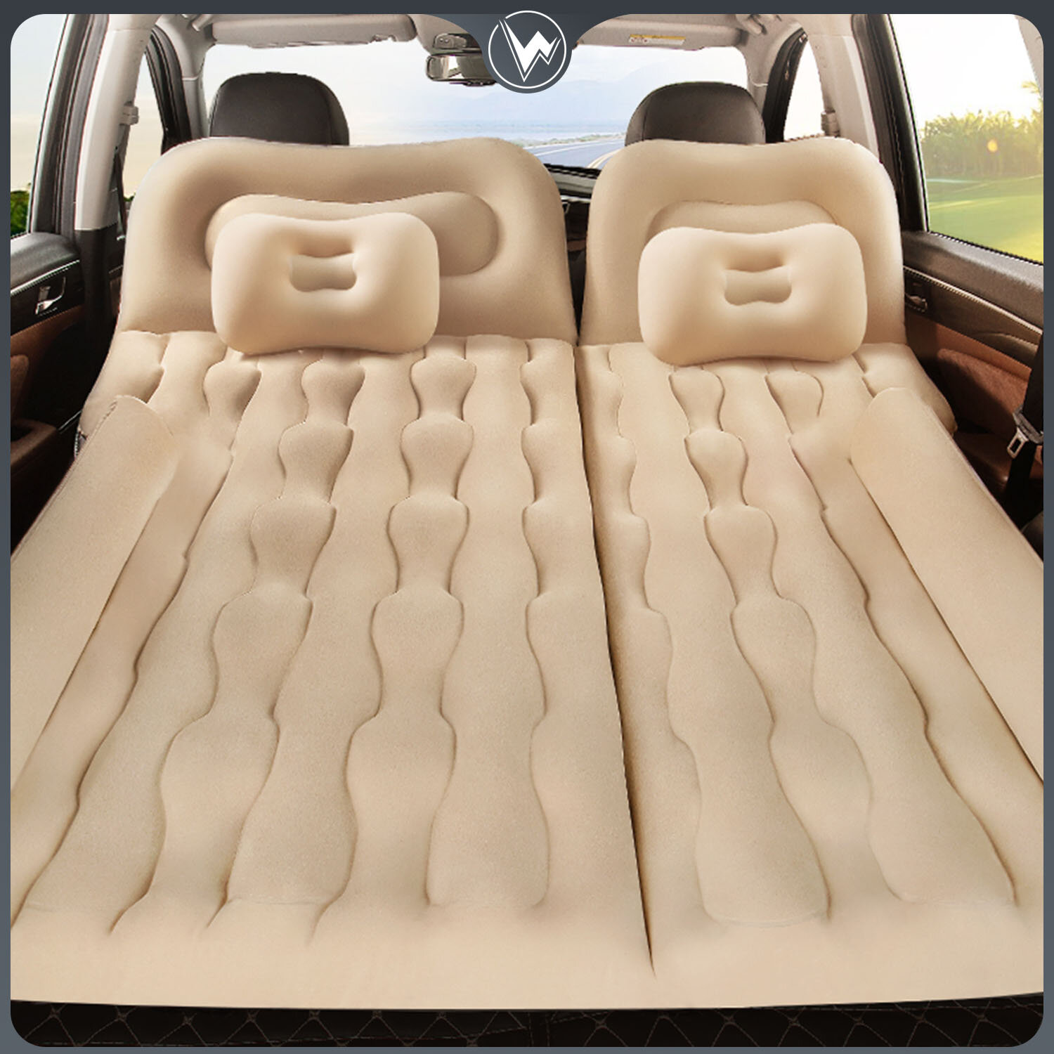 10 цен на Надувной матрас в машину Wanderwells: универсальный в багажник и на задние сидение авто в комплекте с насосом бежевый
