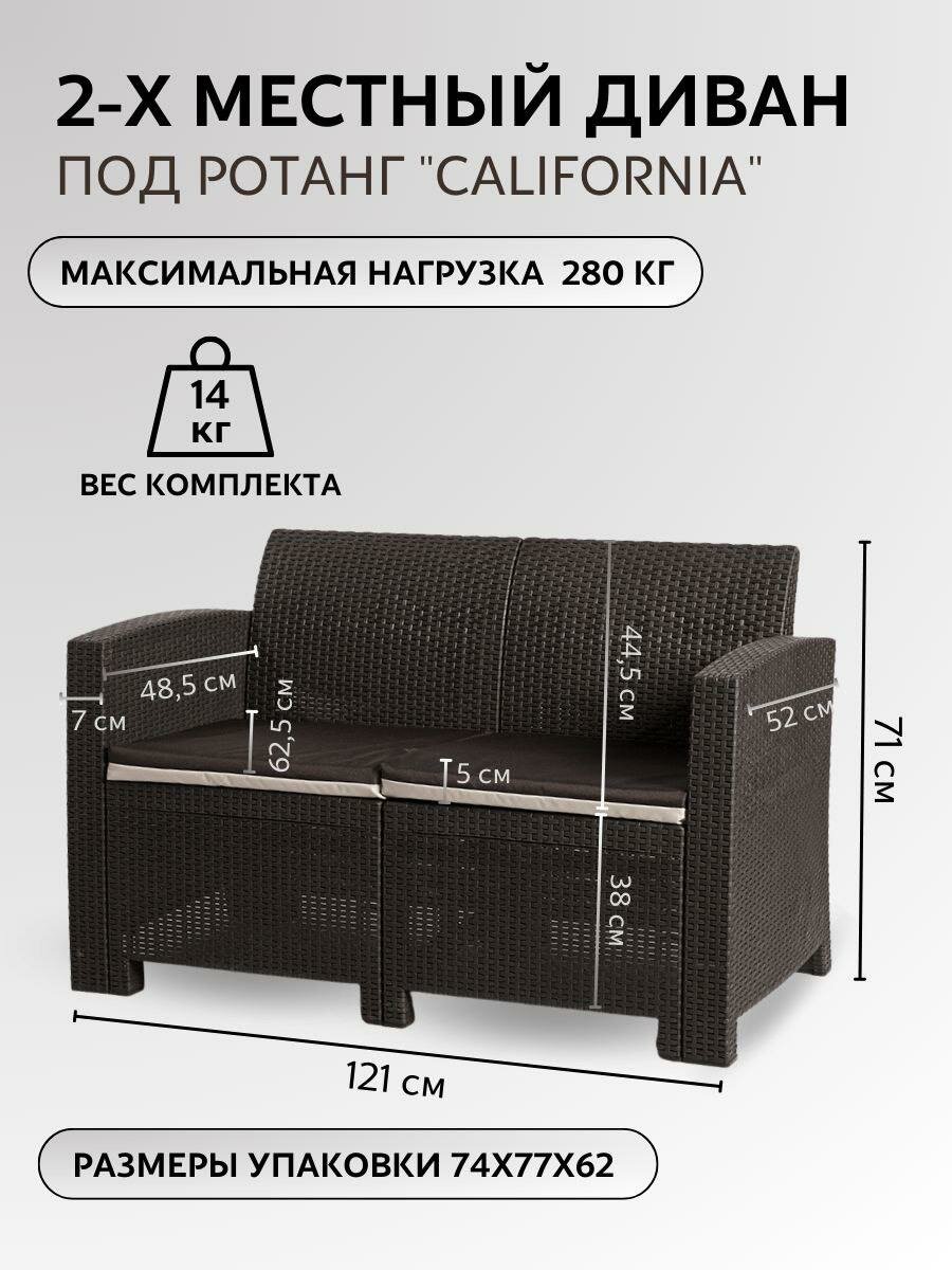 10 цен на Двухместный диван под искусственный ротанг для отдыха Калифорния "California " арт.77763 Мир дачника