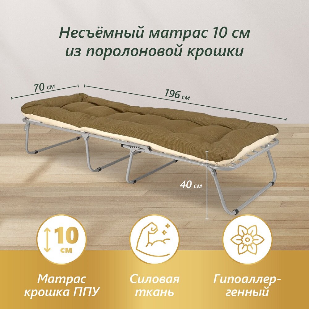 10 цен на Раскладушка кресло - кровать раскладное, без подлокотников,матрас 10 см зафиксирован к каркасу с помощью пружин, спальное место 70Х 196см