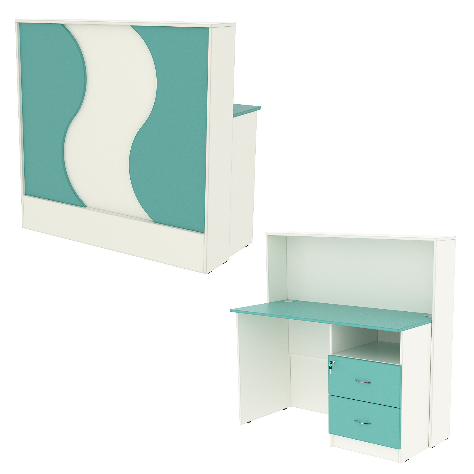 Ресепшн "Нежность Волны" №1В с правосторонней тумбой с ящиками, Белый и Тиффани Аква 123.2 x 60 x 120 см информация: