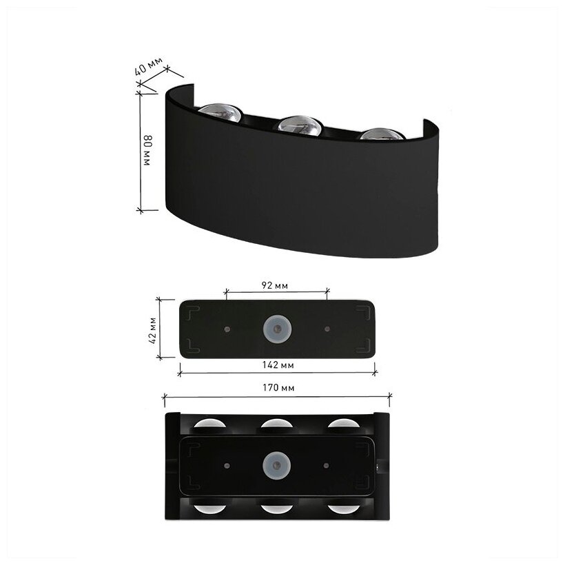 Светодиодный светильник, бра LINZA SIX 6W R-170-WW-black-220-IP54,ESTARES информация:
