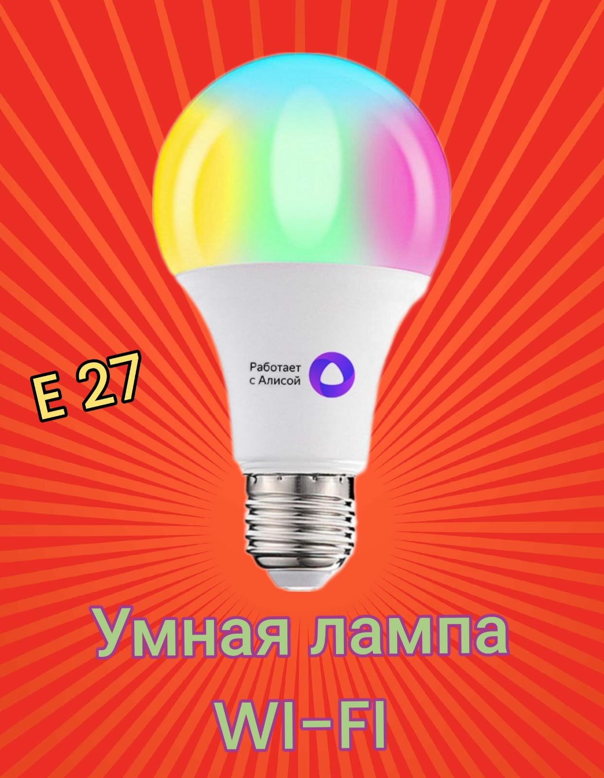 Умная цветная лампочка для Яндекс Алисы LED светодиодная Wi-Fi RGB
