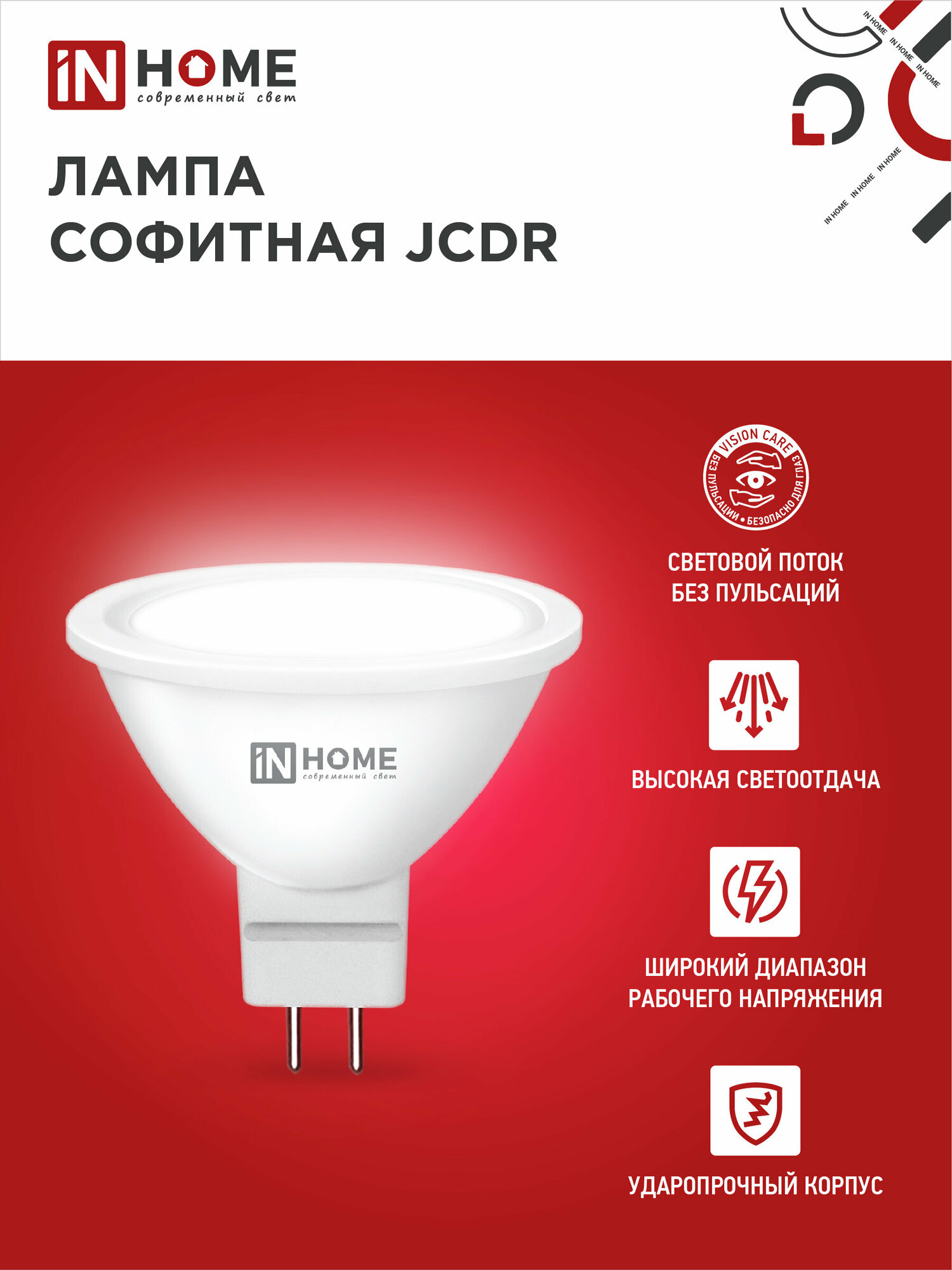 IN HOME Лампа светодиодная LED-JCDR-VC 4PACK 8Вт 230В GU5.3 4000К 720Лм (4шт./1упак.) (арт. 4690612047928) 550 ₽