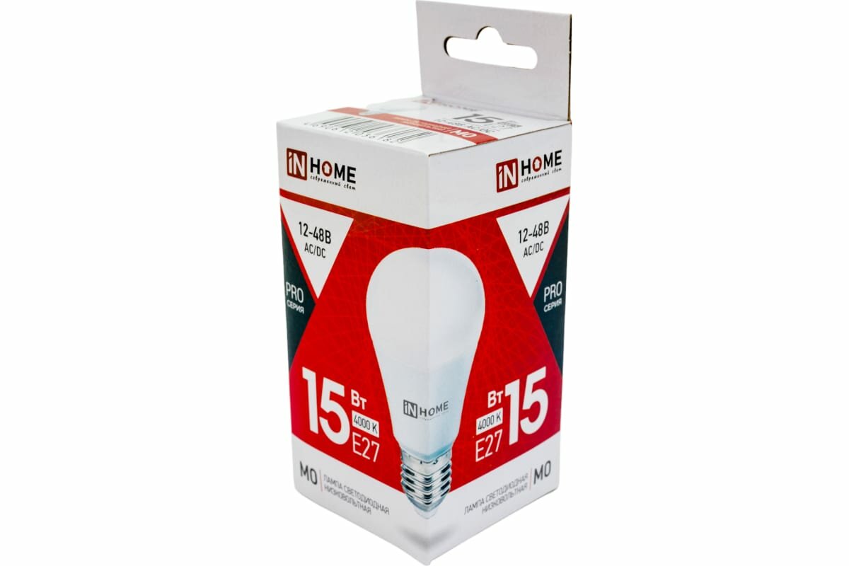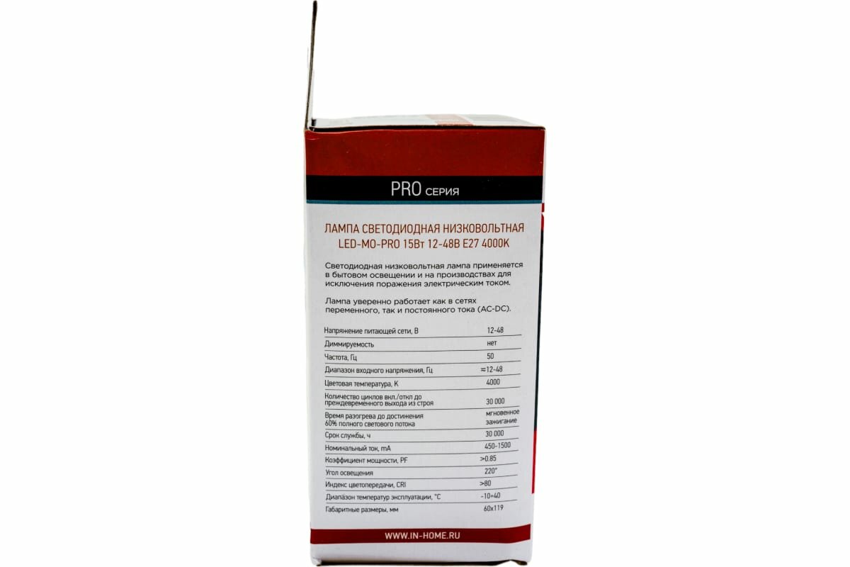10 цен на Лампа светодиодная низковольтная LED-MO-PRO 15Вт 12-48В Е27 4000К 1200лм | код. 4690612036182 | IN HOME ( 1шт. )