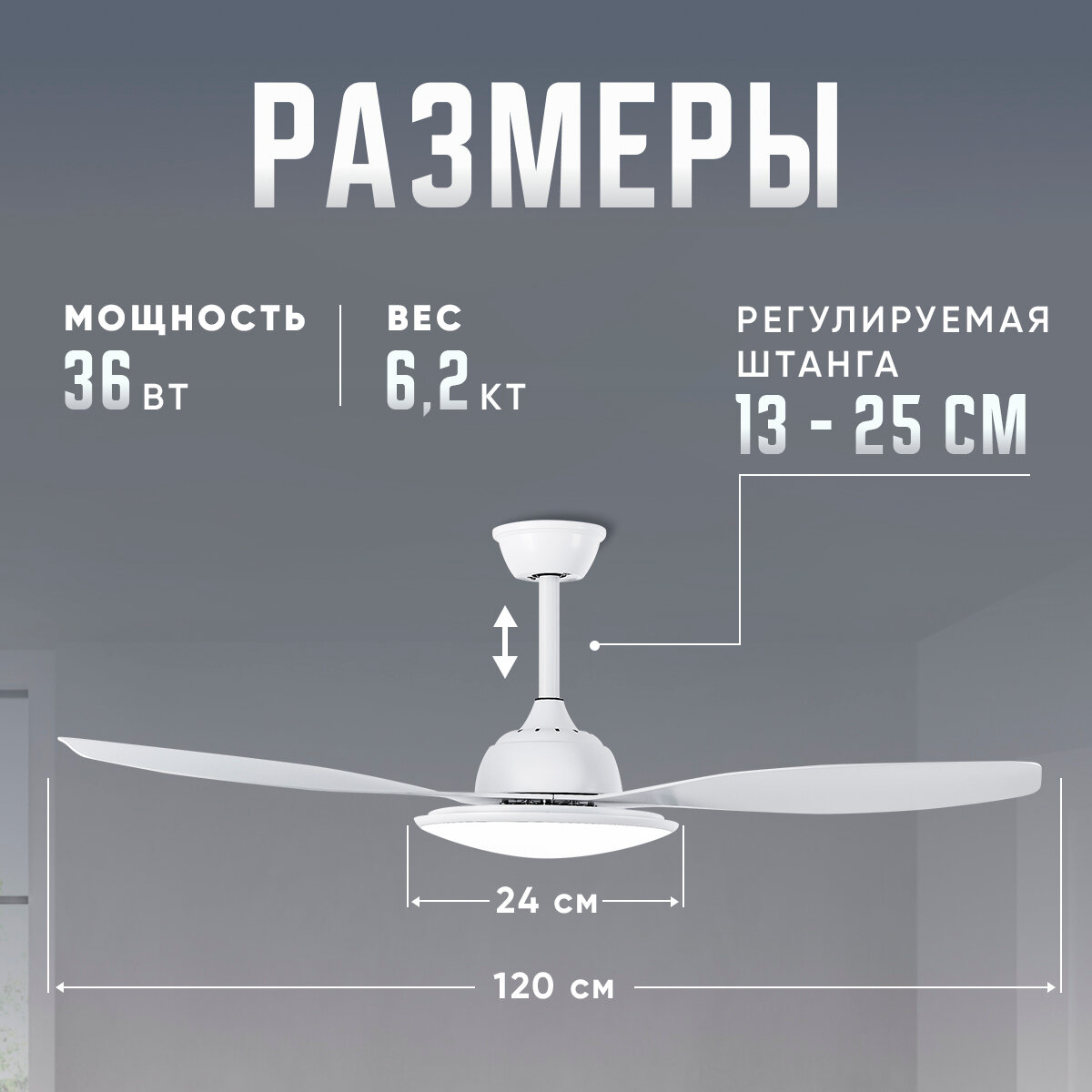 Люстра вентилятор DAIVEN Alatau White / 120 см / 6 скоростей информация: