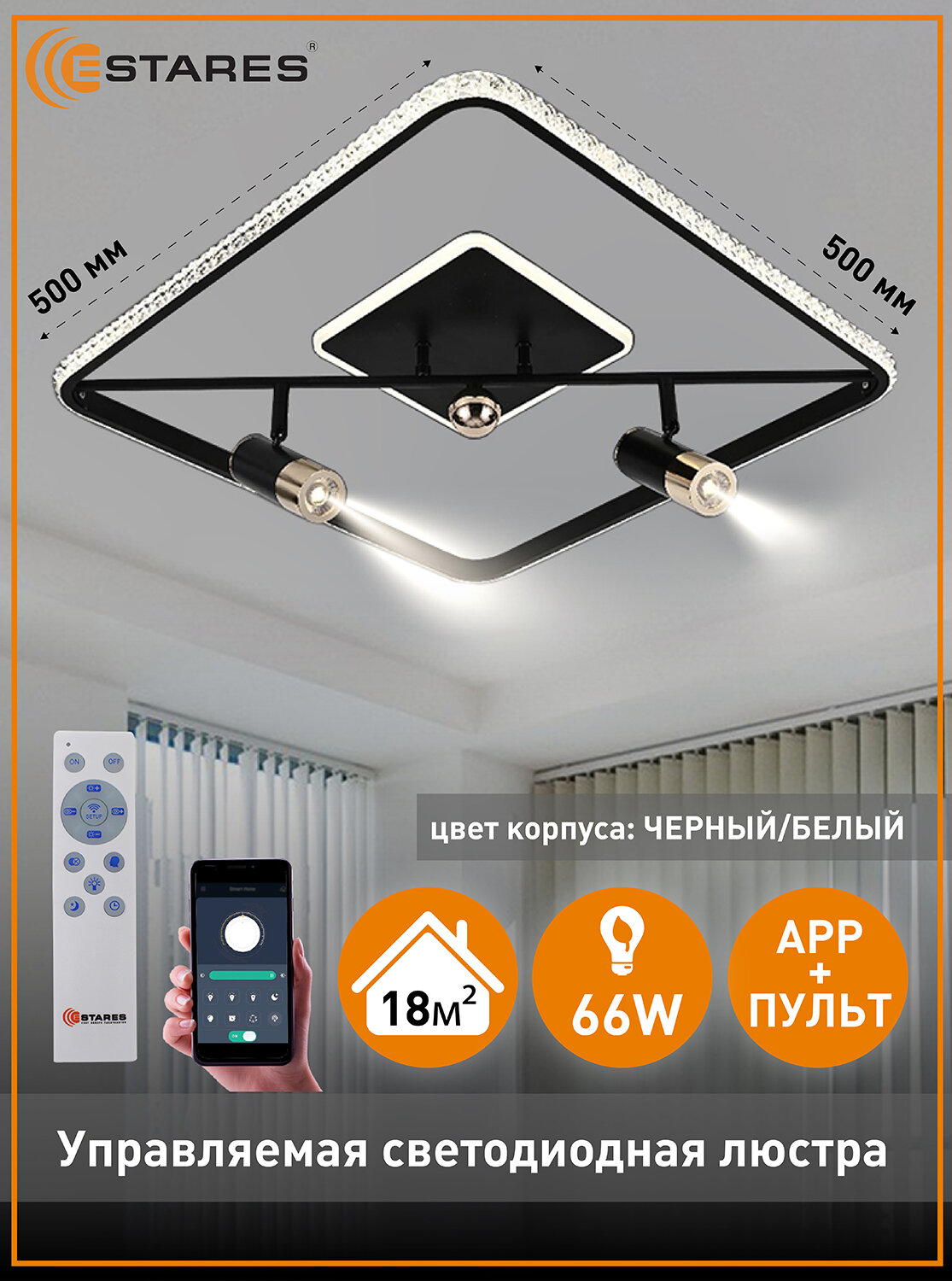 10 цен на Управляемая потолочная светодиодная LED люстра Estares SIRENA с пультом и телефоном 66 Вт