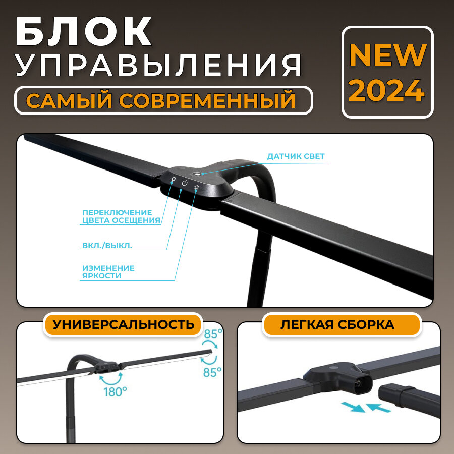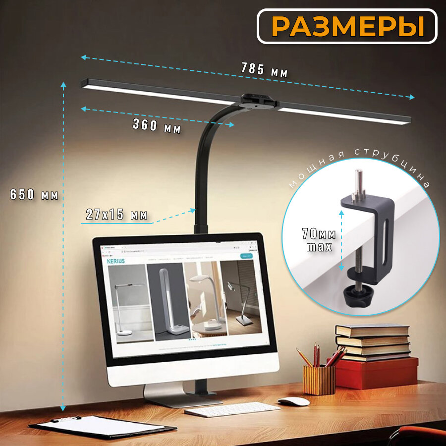Отзывы на Настольная бестеневая LED-Лампа, светильник на струбцине 24Вт для стола , для офиса, для школьника, для компьютера, для чтения. Цвет - черный