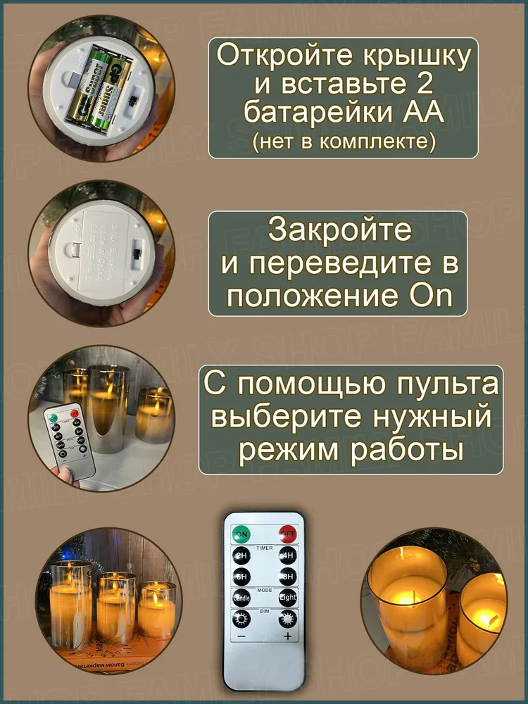 10 цен на Светодиодные свечи с пультом управления - 3 шт