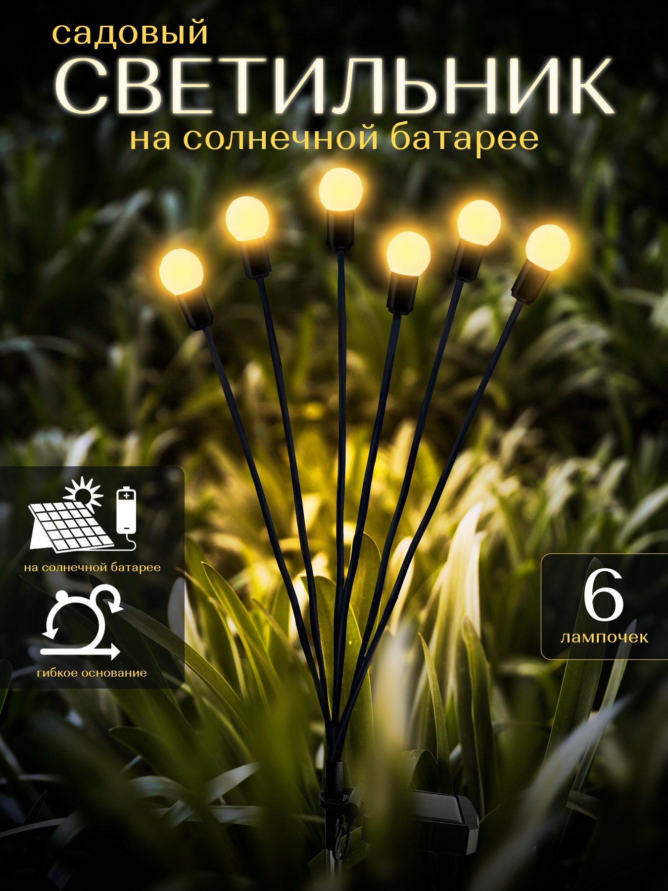 Светильник уличный на солнечной батарее для дома и сада 6 ламп теплый свет (Черный) информация: