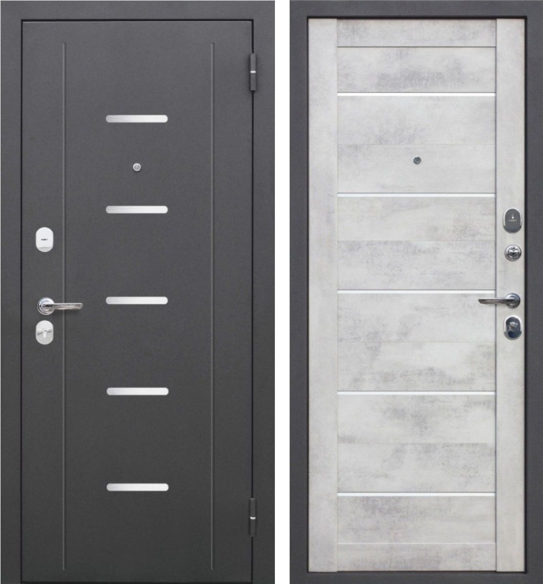 Дверь входная мегатрон WOOD 2 Бетон графит - Белое дерево 960 Правая