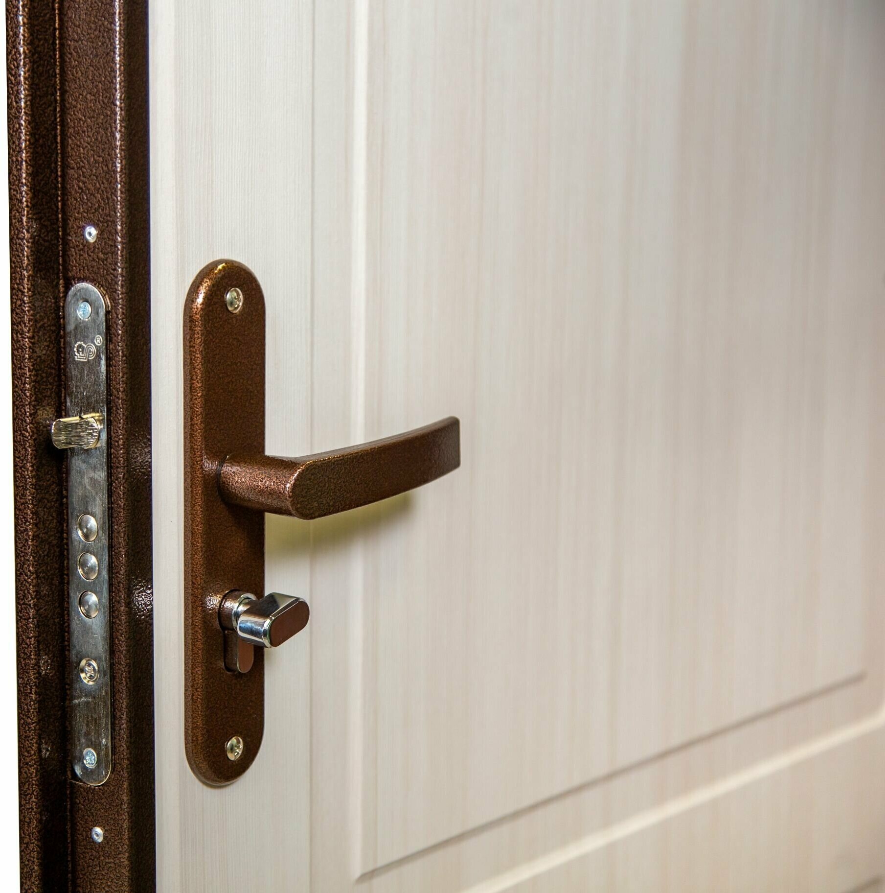10 цен на Дверь входная "ДяДя ФеДя" левое 2050*860 Антик медь/МДФ Сандал белый