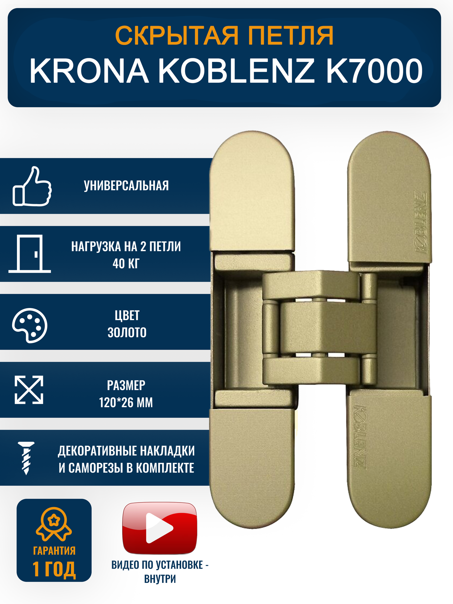 Мебельная петля скрытого монтажа с накладками KRONA K7000, цвет золото информация: