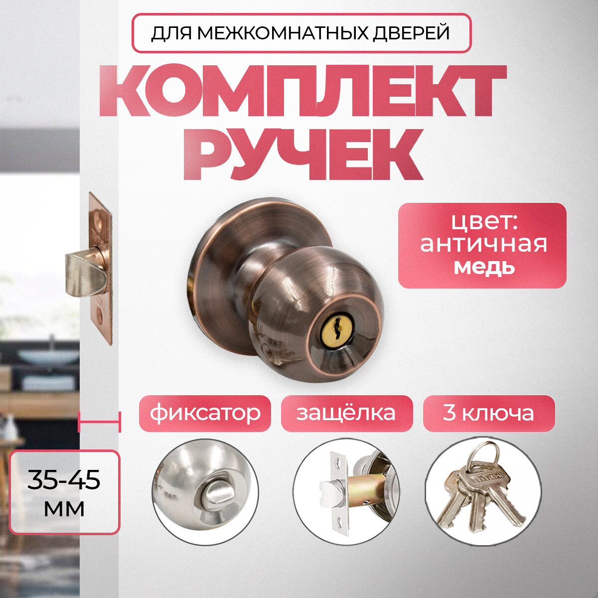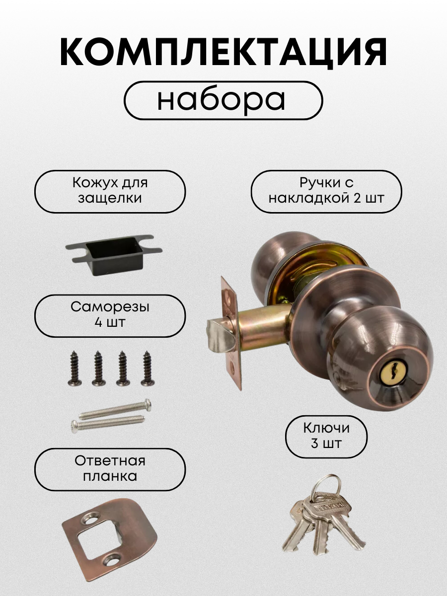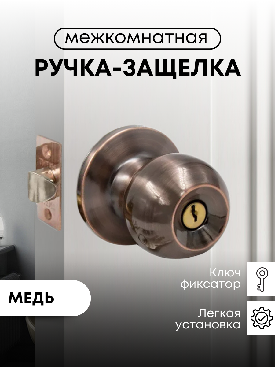 Отзывы на Ручка дверная межкомнатная с защелкой Титан 706-00 AС , ключ/фиксатор, Античная медь