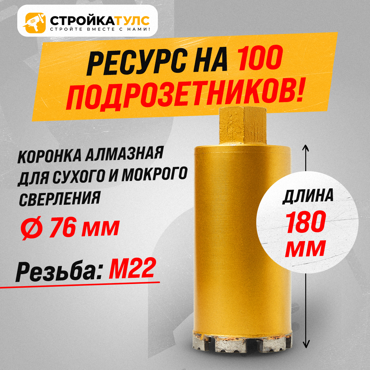 Отзывы на Коронка алмазная М22 76*180 мм для подрозетников по бетону, кирпичу для сухого бурения