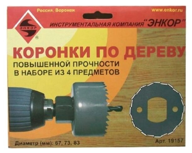 Набор коронок для дерева (3 шт + адаптер) Энкор 19157 информация: