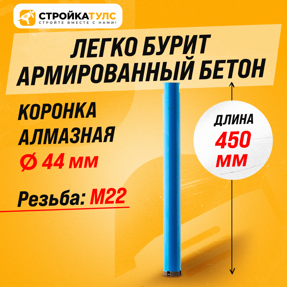 Отзывы на Коронка алмазная М22 44*450 мм по бетону, кирпичу для сухого и мокрого бурения
