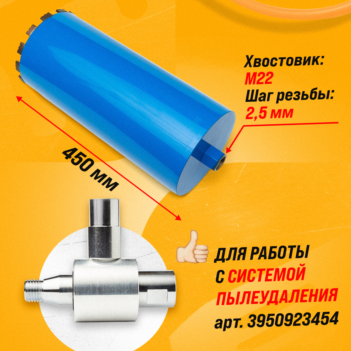 Коронка алмазная М22 200*450 мм по бетону, кирпичу для сухого и мокрого бурения 9 122 ₽
