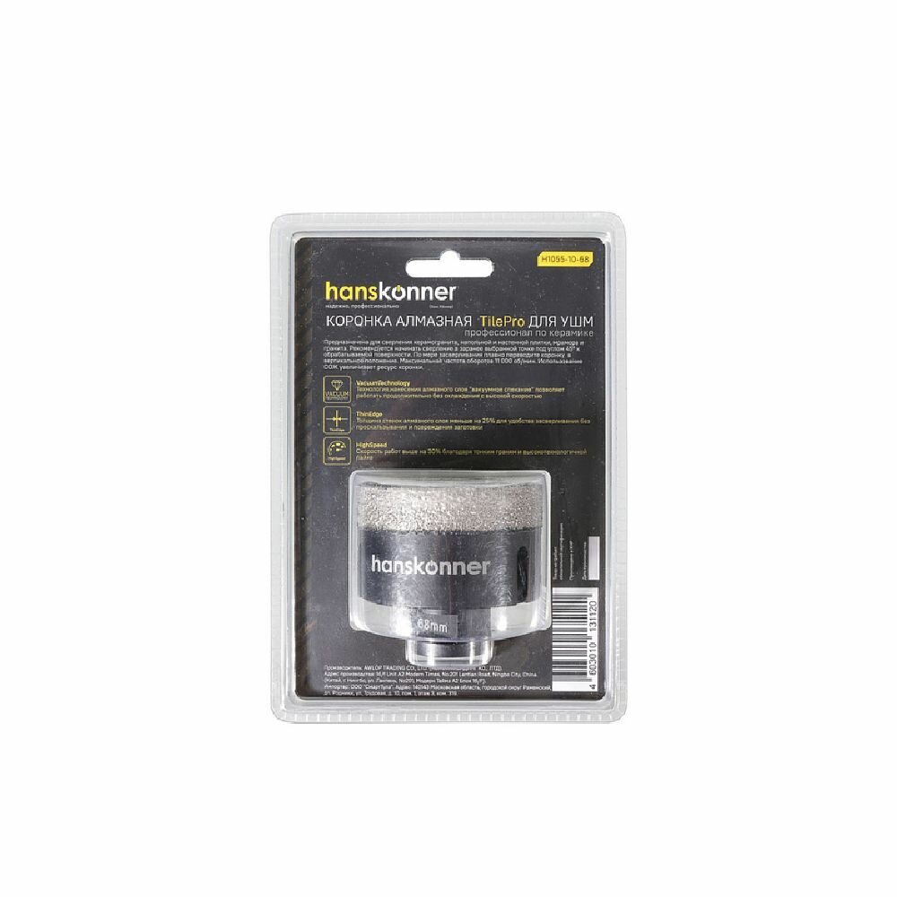 Коронка алмазная для УШМ, TilePro, 68 мм, вакуумн. спекание алмазов, Hanskonner, H1055-10-68 информация: