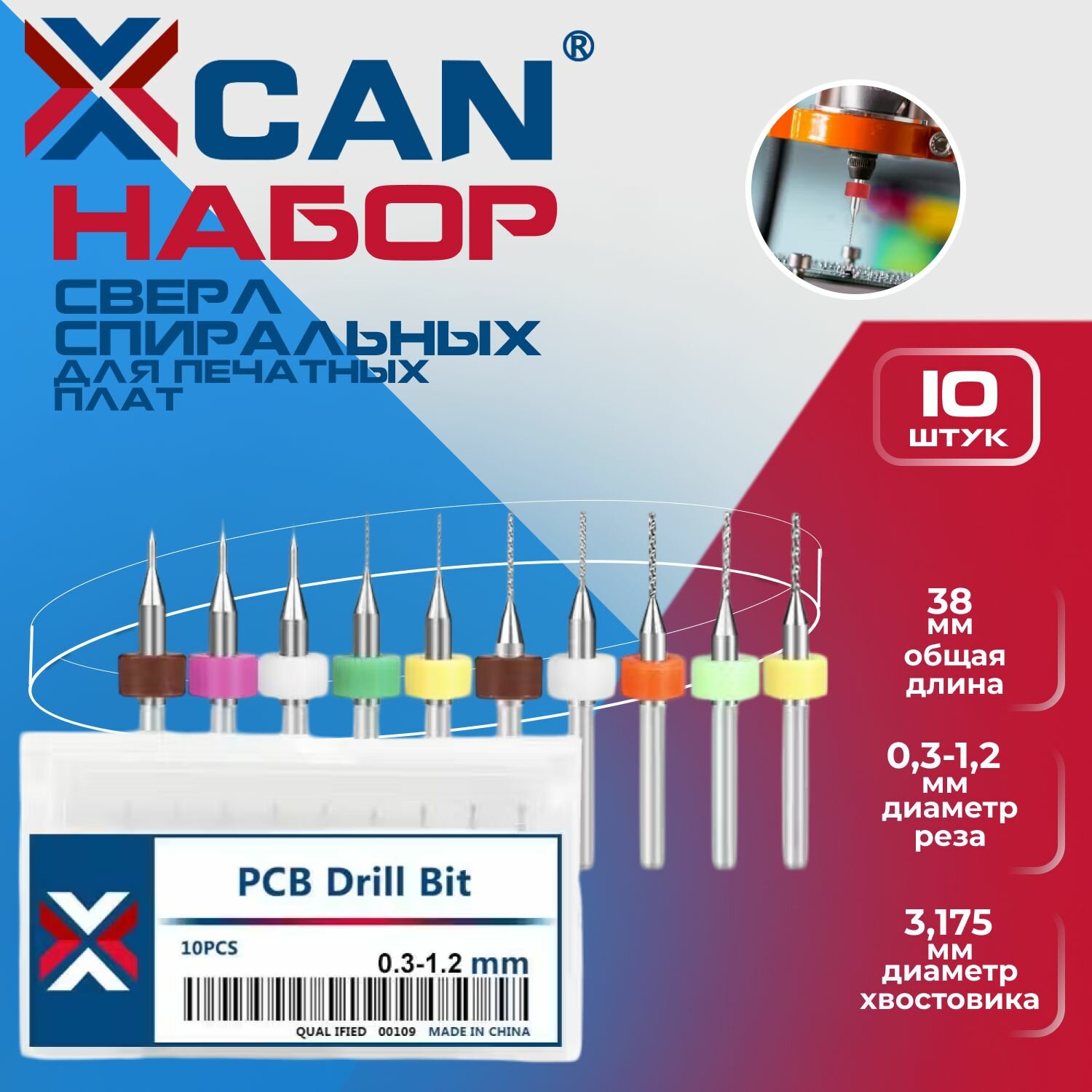 10 цен на Набор сверл спиральных XCAN для печатных плат 0,3-1,2 мм, 10 шт.