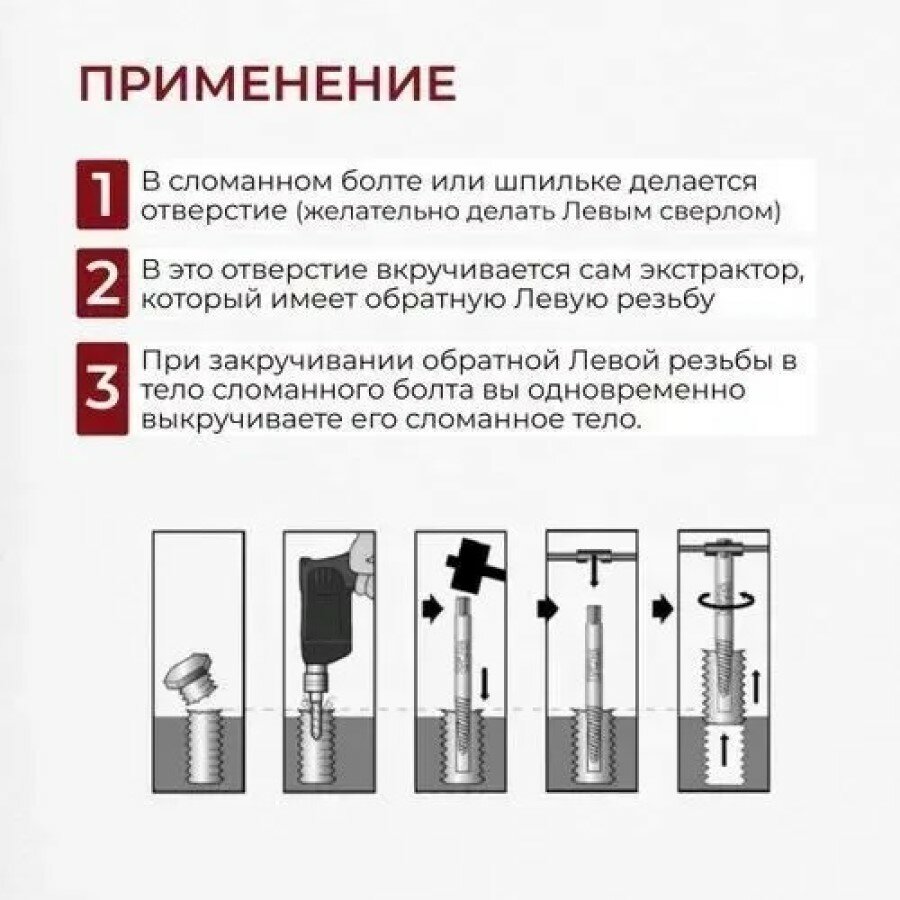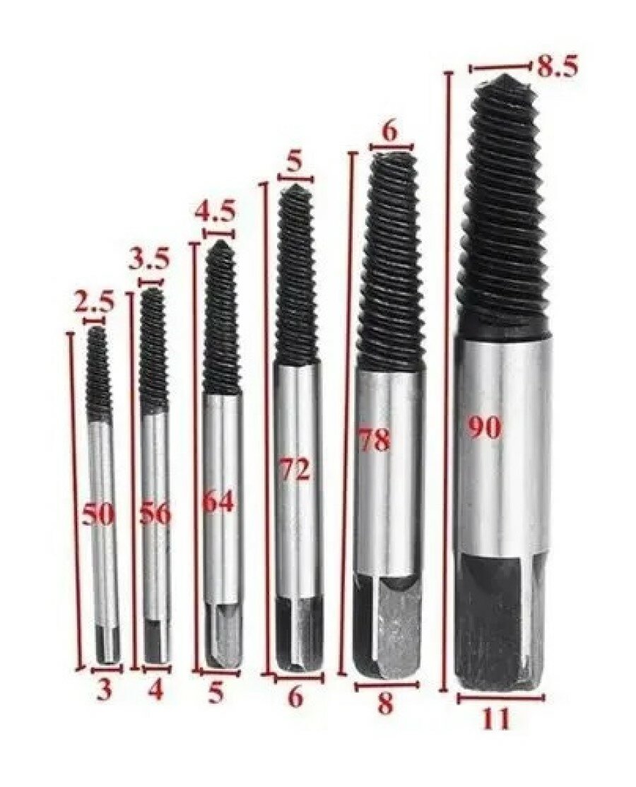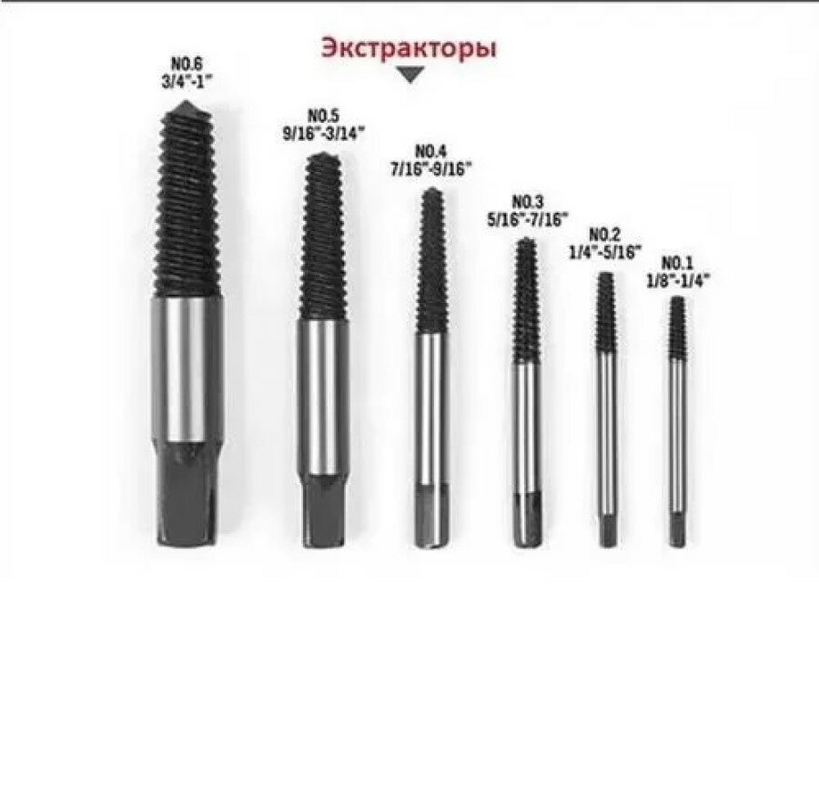 Набор экстракторов для извлечения сломанных , винтов/ шпилек/ набор 6 штук. информация: