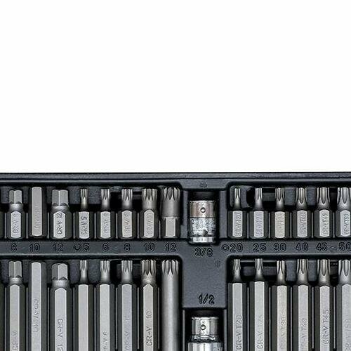 | Дополнительная информация | Состав набора: • Вставка шестигранник 30 мм: 4, 5, 6, 7, 8, 10, 12 мм • Вставка шестигранник 75 мм: 4, 5, 6, 7, 8, 10, 12 мм • Вставка TORX 30 мм с отверстием: T20, T25, T30, T40, T45, T50, T55 • Вставка TORX 75 мм с отверстием: T20, T25, T30, T40, T45, T50, T55 • Вставка SPLINE 30 мм: М5, М6, М8, М10, М12 • Вставка SPLINE 75 мм: М5, М6, М8, М10, М12 • Держатель вставки: F1/2"DR*F3/8"HEX • Держатель вставки: F3/8"DR*F3/8"HEX • Пластиковый кейс |