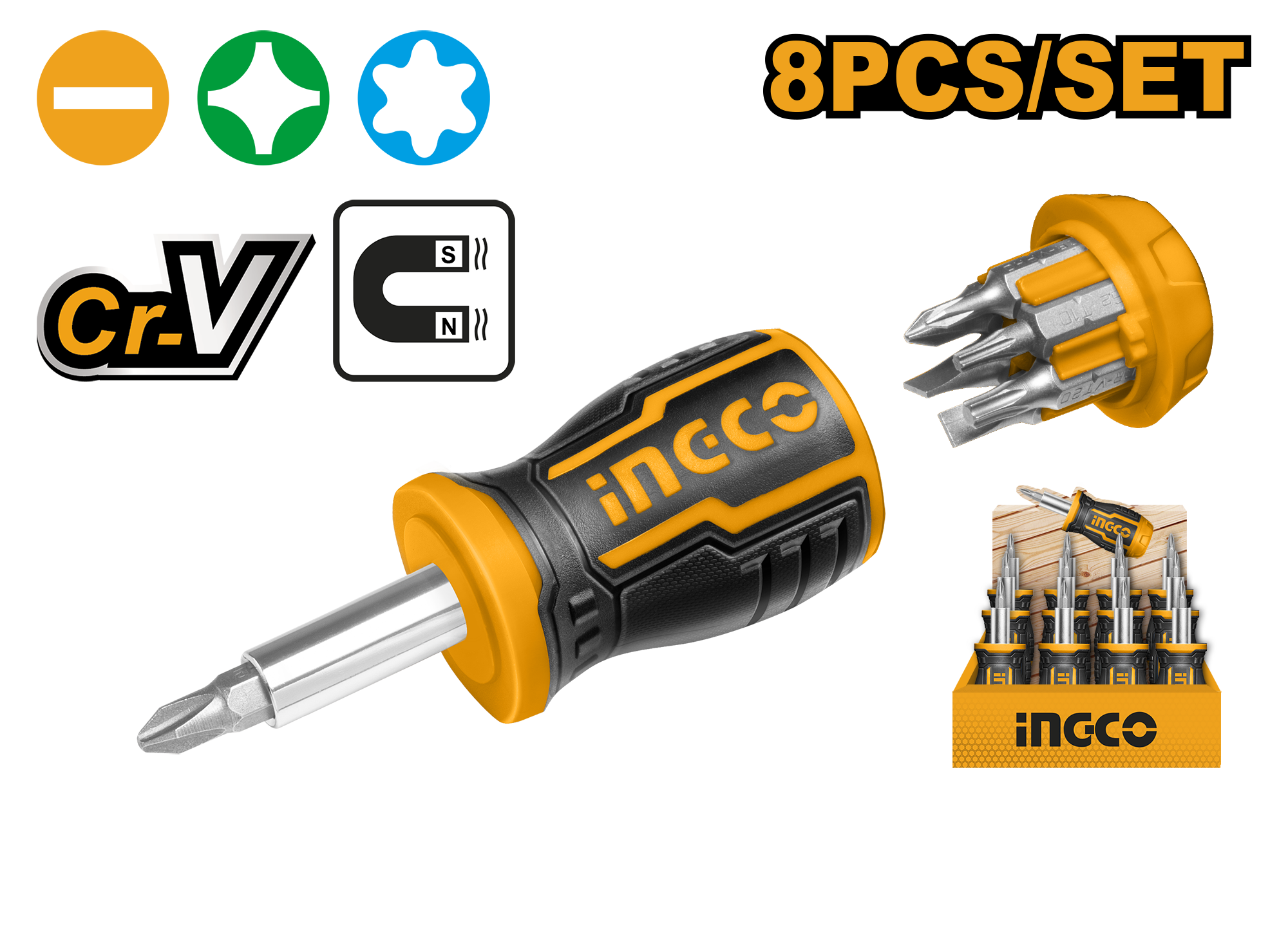 Отвертка c набором насадок 8 в 1 AKISDS0708 INGCO INDUSTRIAL информация: