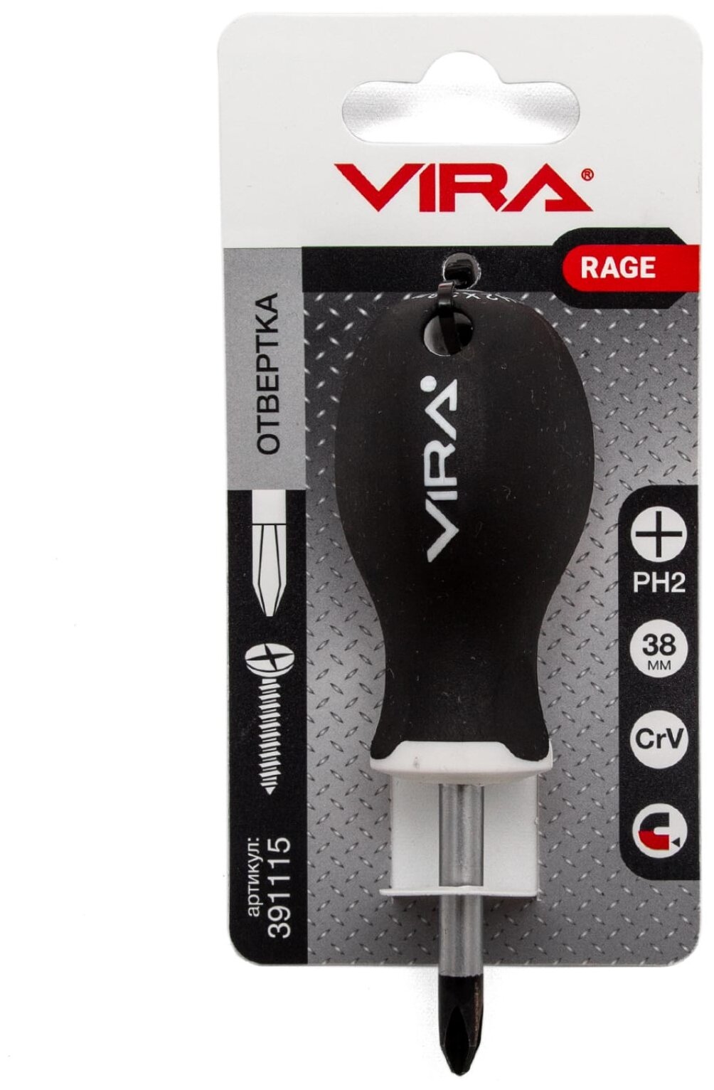 Отвертка RAGE by VIRA PH2x38 мм, CR-V, эргон. 2-хкомпон. ручка 391115 информация: