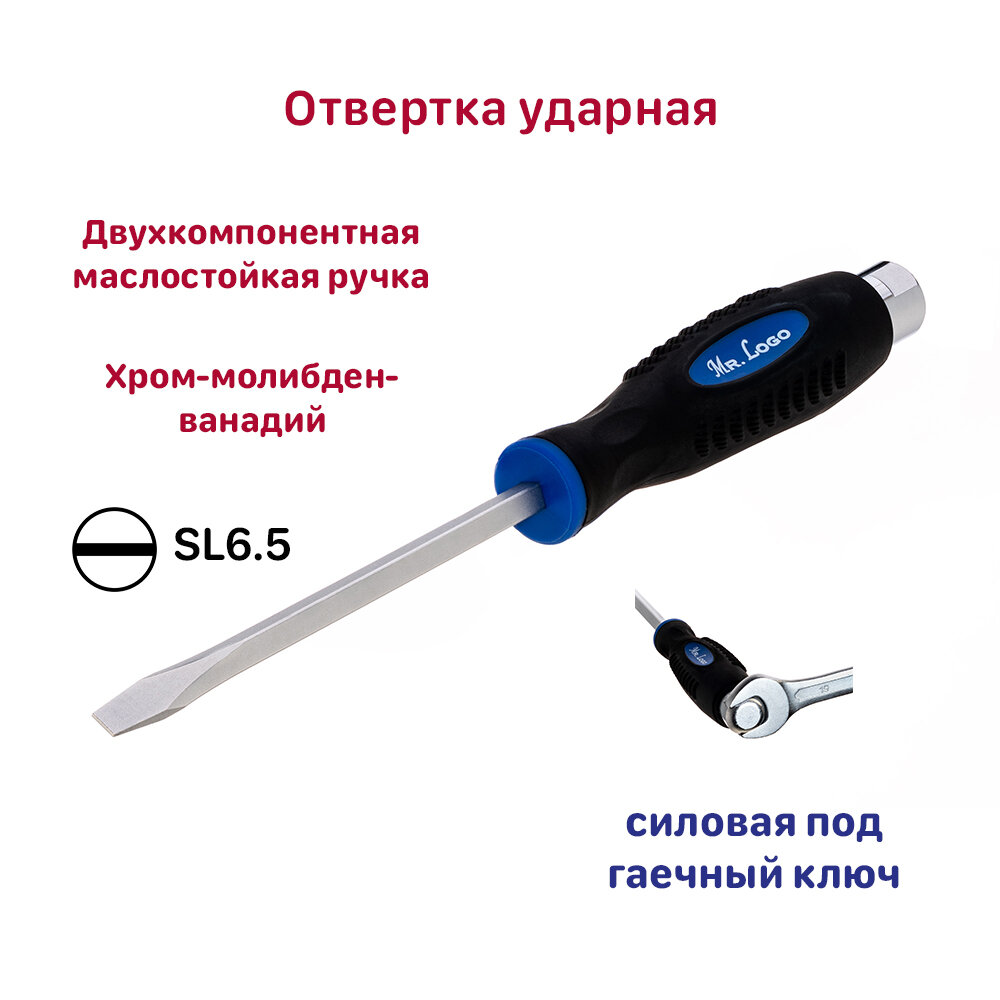 Отвертка ударная SL6.5 x 125 мм Mr.Logo (силовая под гаечный ключ) информация: