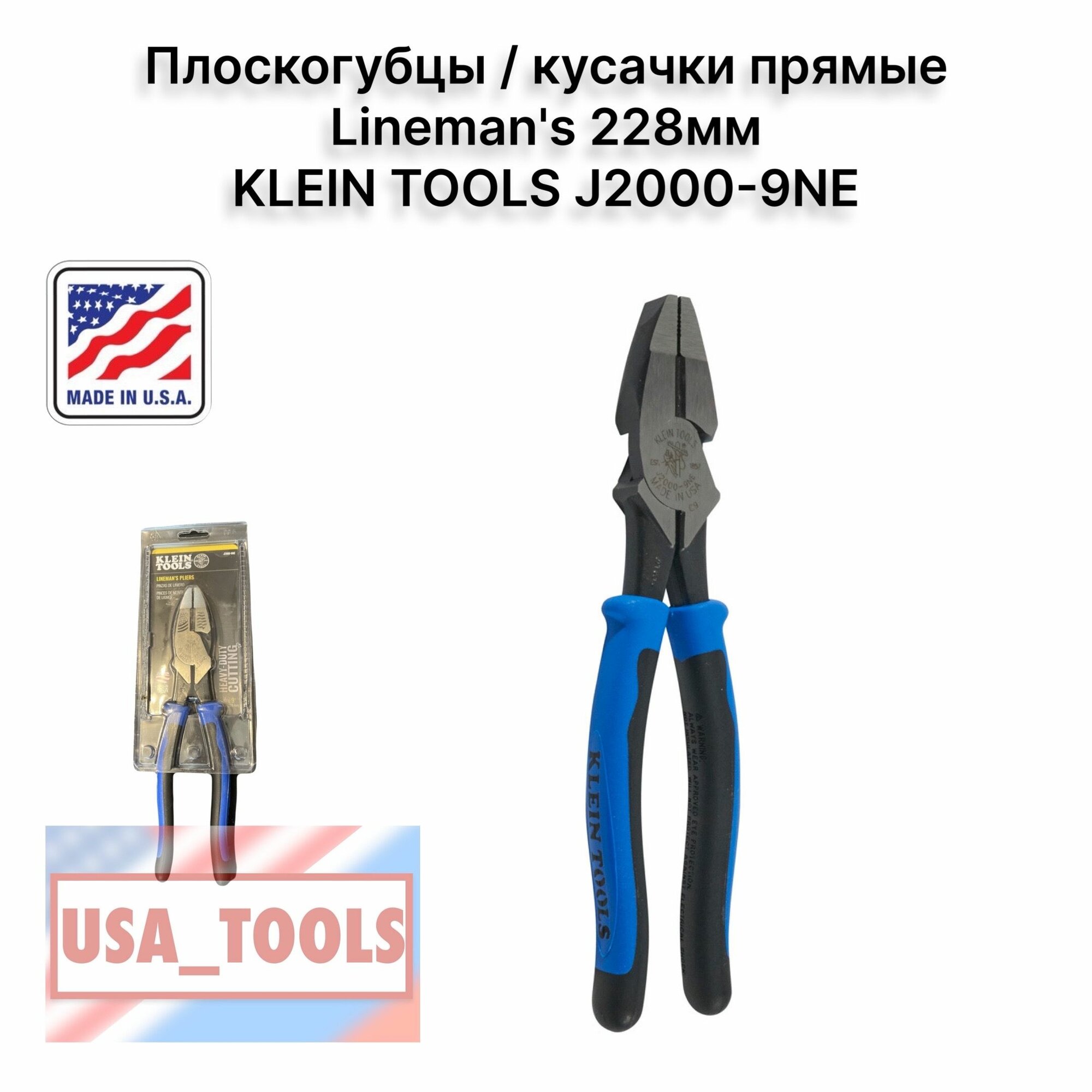 Плоскогубцы / кусачки прямые Lineman's 228мм KLEIN TOOLS J2000-9NE информация:
