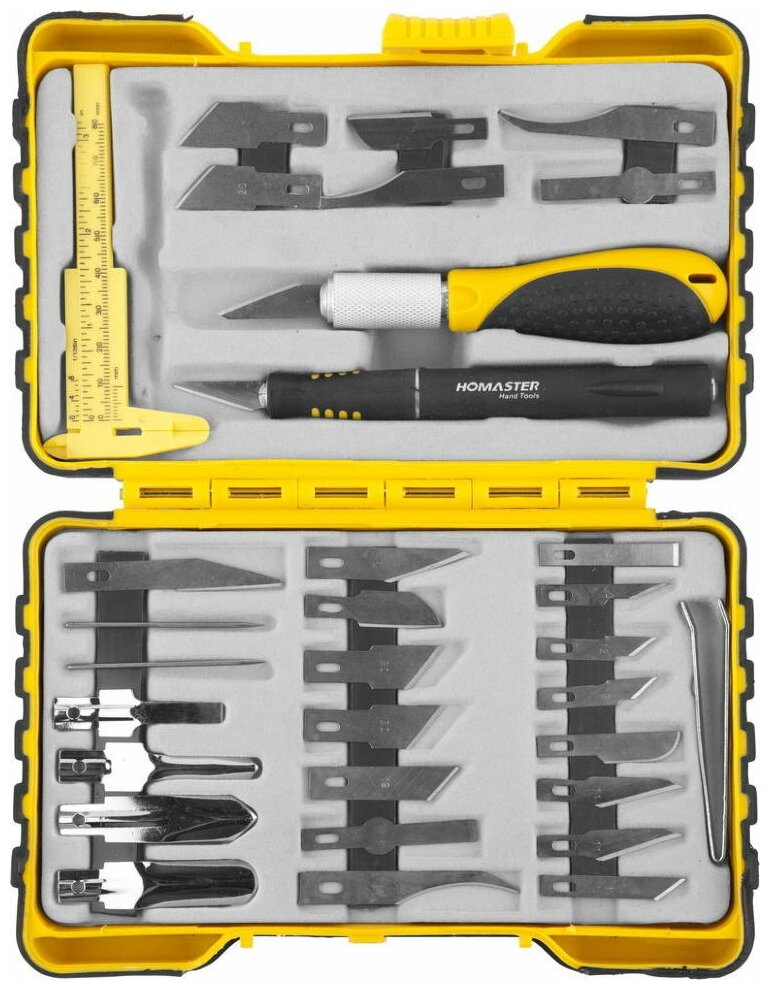 | Состав набора | рукоятка двухком-понентная с резцом – 2 шт., резец фигурный – 22 шт., долото – 4 шт., пинцет, игла-шило – 2 шт., отвертка SL2, штангенциркуль пластиковый |