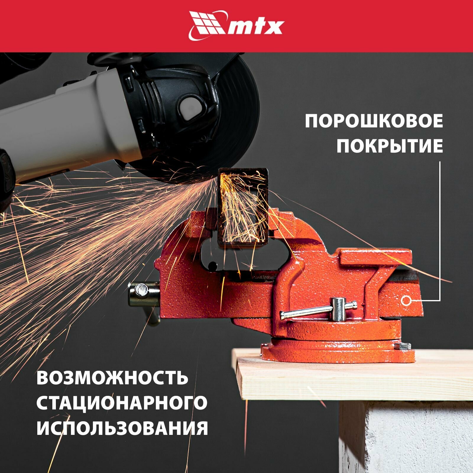 Тиски слесарные поворотные MTX 150 мм, с наковальней 18637 информация: