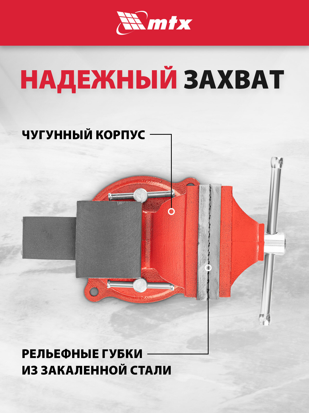 Тиски слесарные поворотные MTX 100 мм с наковальней 18631 информация: