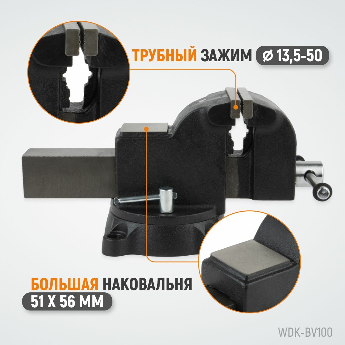 10 цен на Профессиональные слесарные тиски поворотные с наковальней 100 мм, WDK-BV100