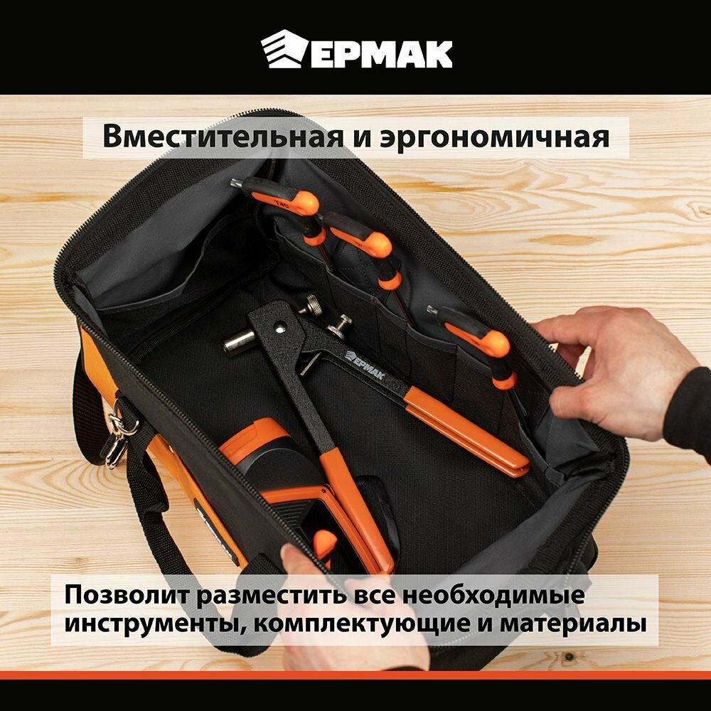 Отзывы на Сумка для инструмента ермак, 20 карманов, 40x20x25 см, оксфорд