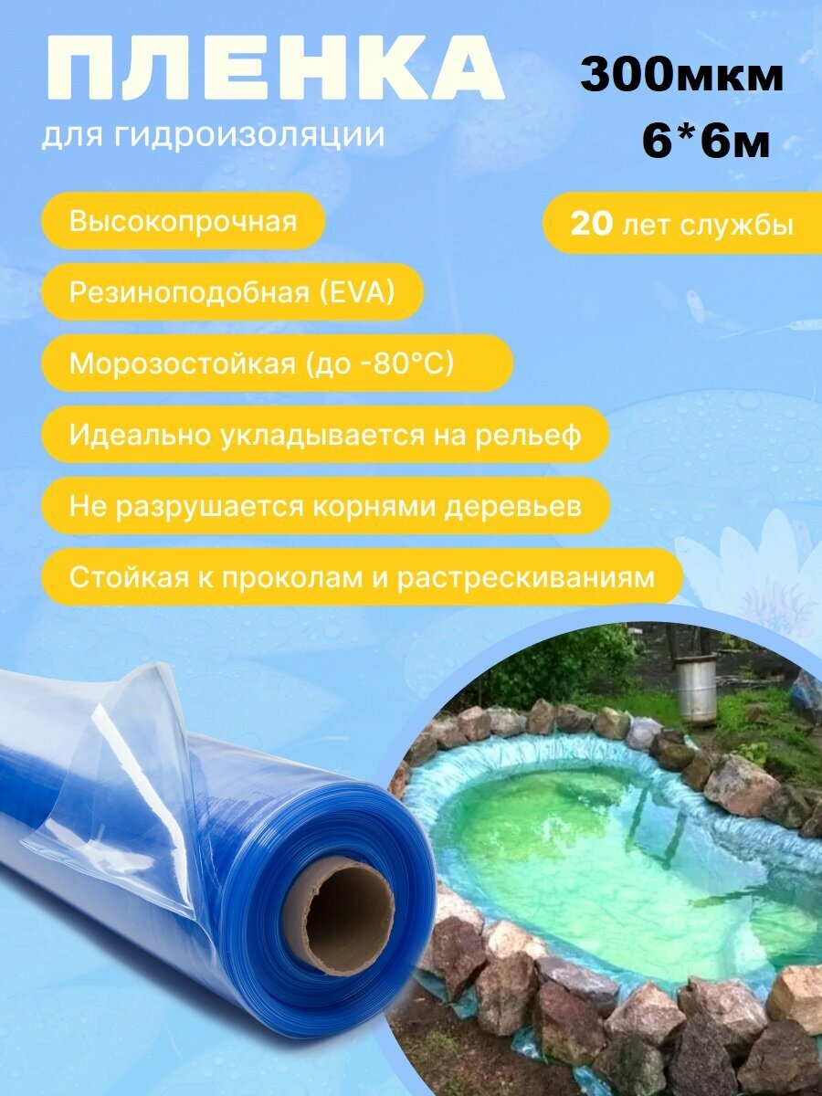 Пленка Водяной 300 мкм 6*7; пленка для строительства; пленка для гидроизоляции для бассейна; пленка для пруда; пленка для водоемов; прочная пленка 13 240 ₽