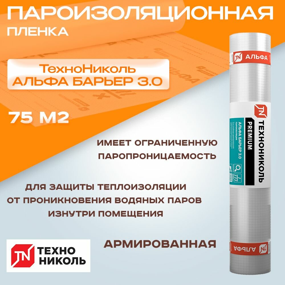 Пароизоляционная пленка технониколь Альфа БАРЬЕР 3.0, 75 м2 информация: