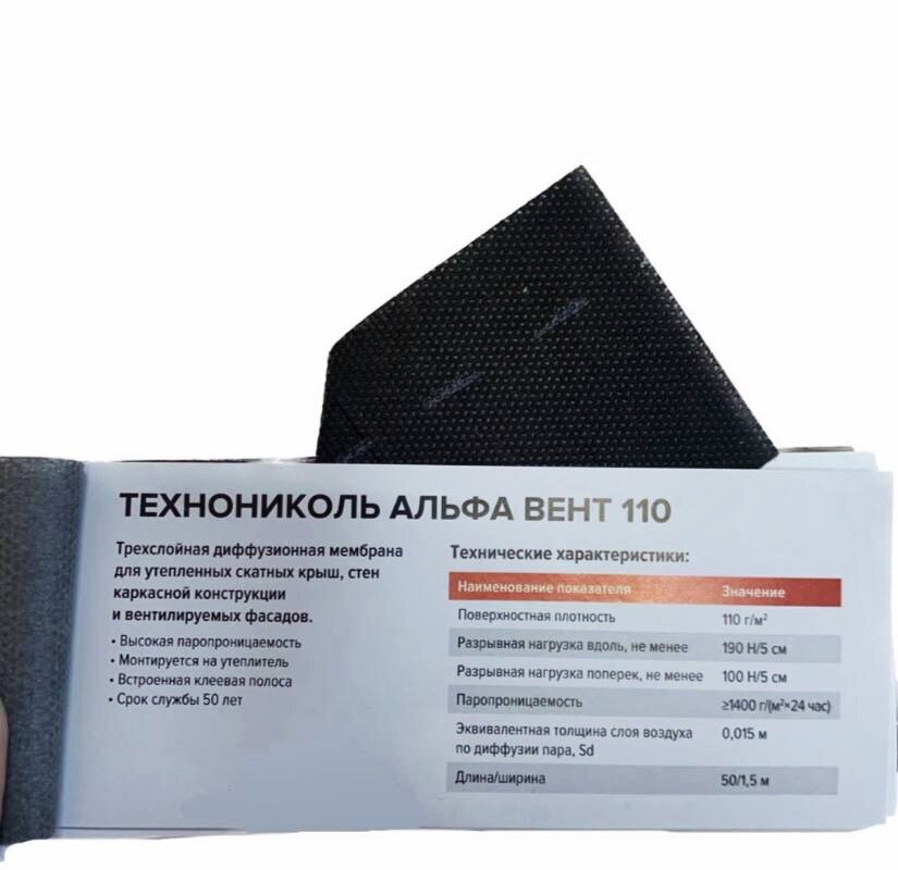 Гидро-ветрозащитая диффузионная мембрана технониколь Альфа вент 110, 75 м2 информация: