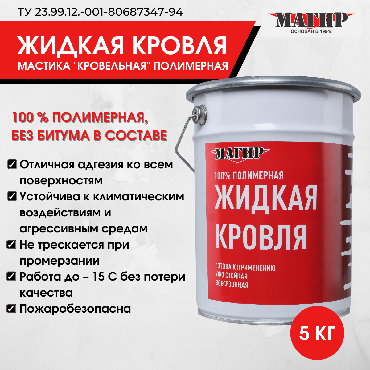 Жидкая Кровля Магир, полимерная без битума, черная, 5 кг информация: