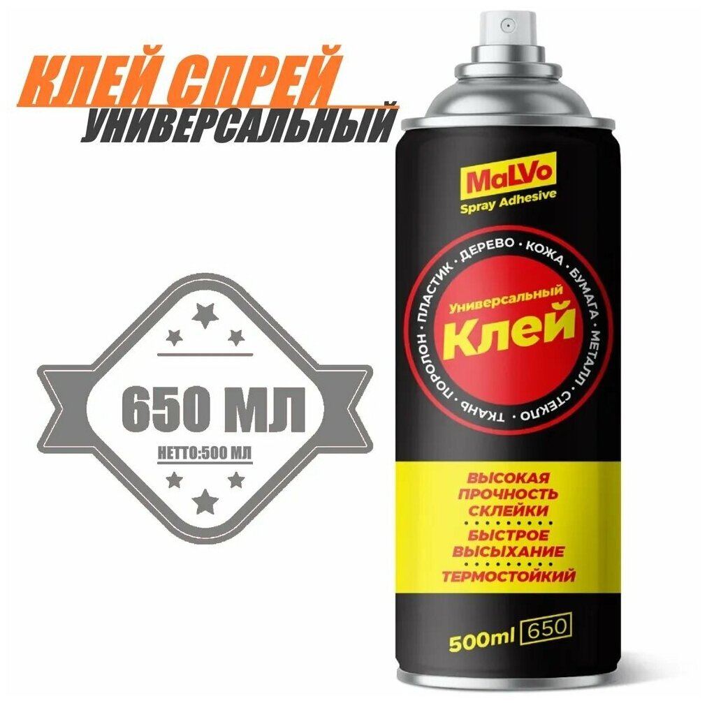 Клей аэрозоль универсальный MaLVO "Клей-спрей", 650 мл прозрачный информация: