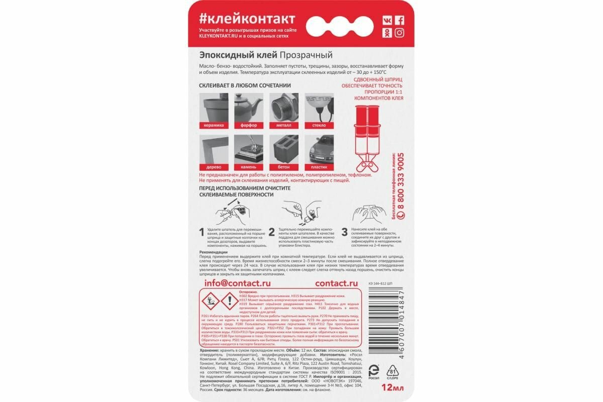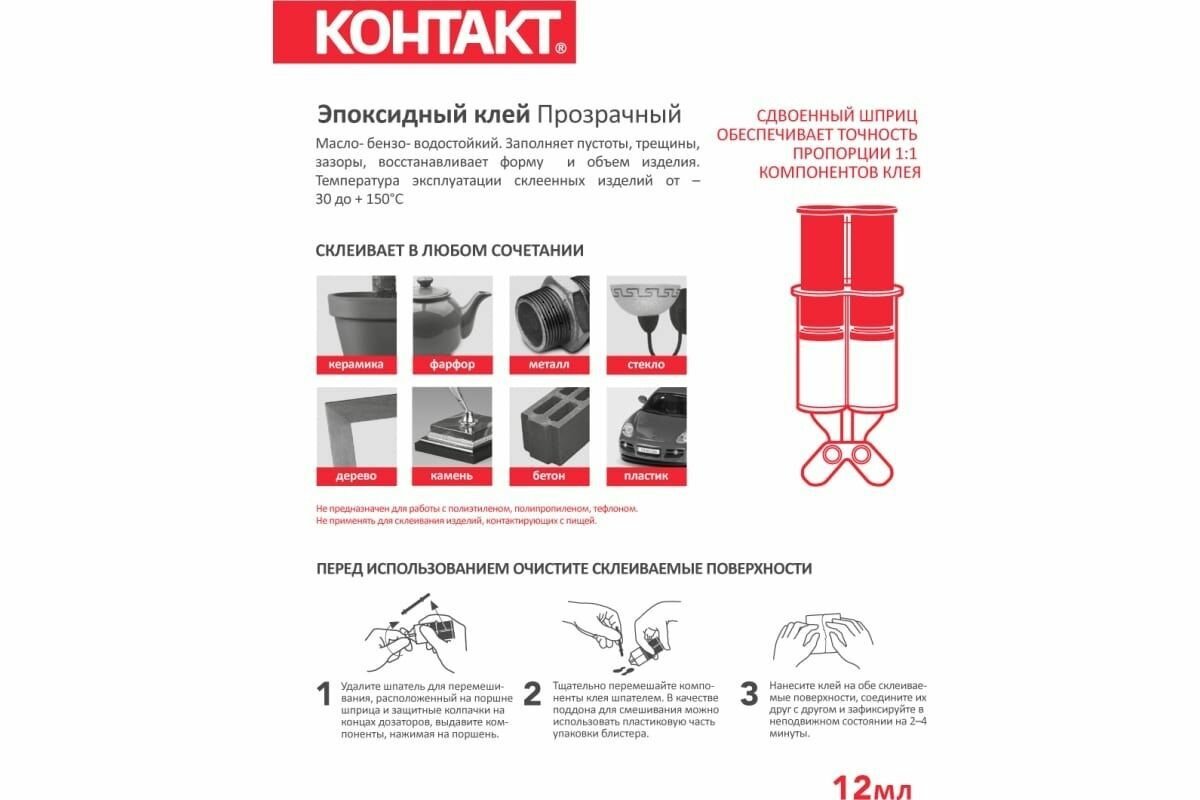 Эпоксидный двухкомпонентный клей контакт 12мл Прозрачный информация: