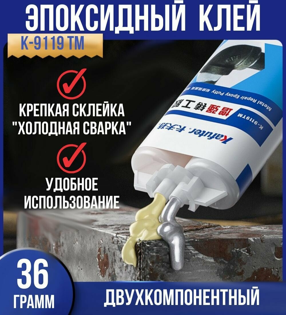 Эпоксидный клей двухкомпонентный / универсальный сверхпрочный для металла, пластика, обуви, автомобиля / АВ в тубе / 36гр информация: